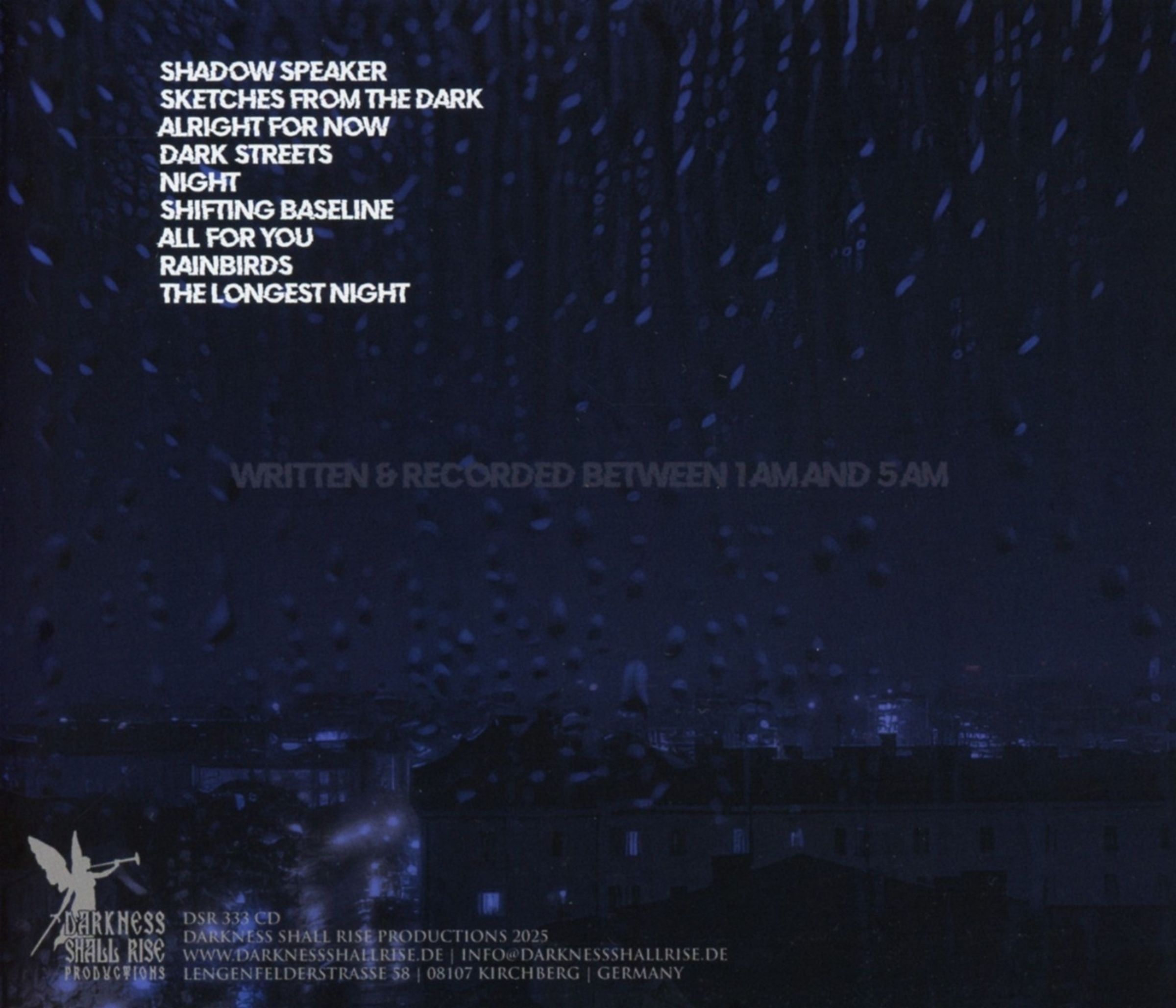 CD-Cover mit "Dererand" und "The Longest Night", CD und Booklet mit Bild von zwei Männern und blauem Design-Element., CD