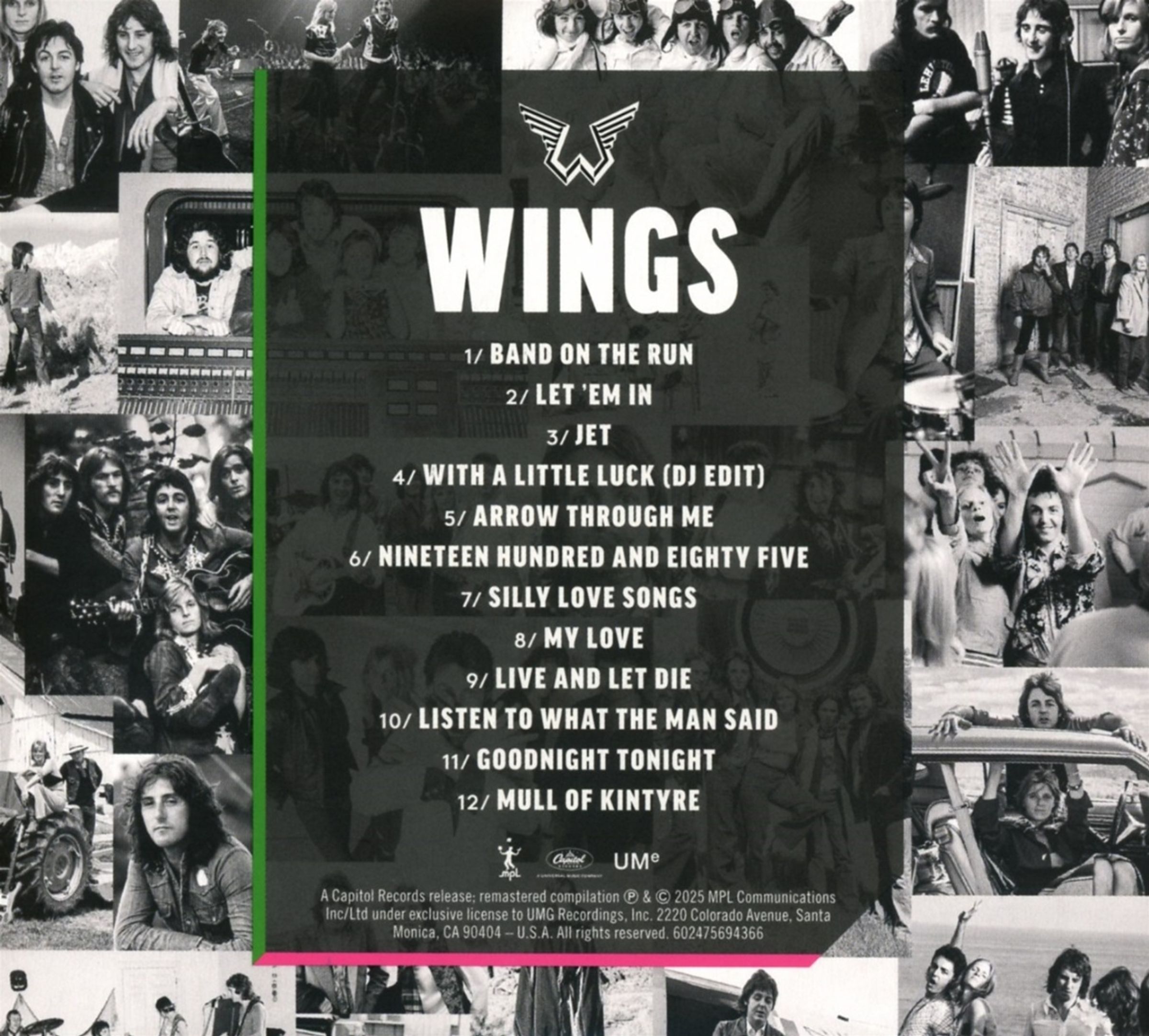 Die »Wings«-Collection ist die ultimative Anthologie einer Band, die den Sound der 1970er Jahre geprägt hat. »Wings« ist eine liebevoll zusammengestellte, von Paul McCartney persönlich kuratierte Zeitkapsel, bestehend aus Bildern und Musik. Sie enthält zeitlose internationale Hits, darunter »Band On The Run«, »Live And Let Die«, »Jet‹ und »Let 'Em In« – Songs, die bis heute in seinen Live-Shows zu hören sind.
