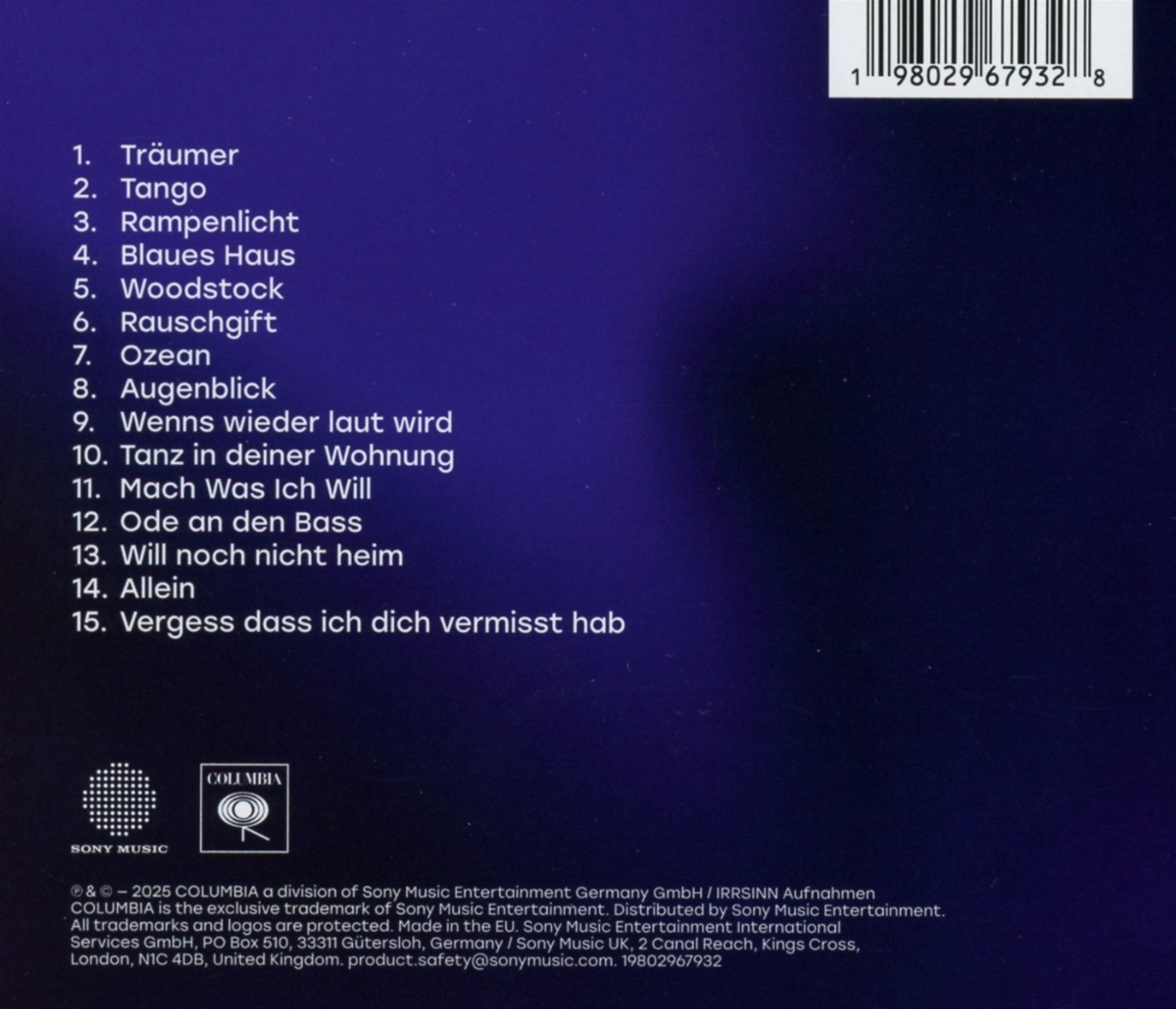 Debut-Album »Alle meine Freunde sind Träumer« inkl. der Singles »Ode an den Bass«, »Tango« und »Tanz in meiner Wohnung«.