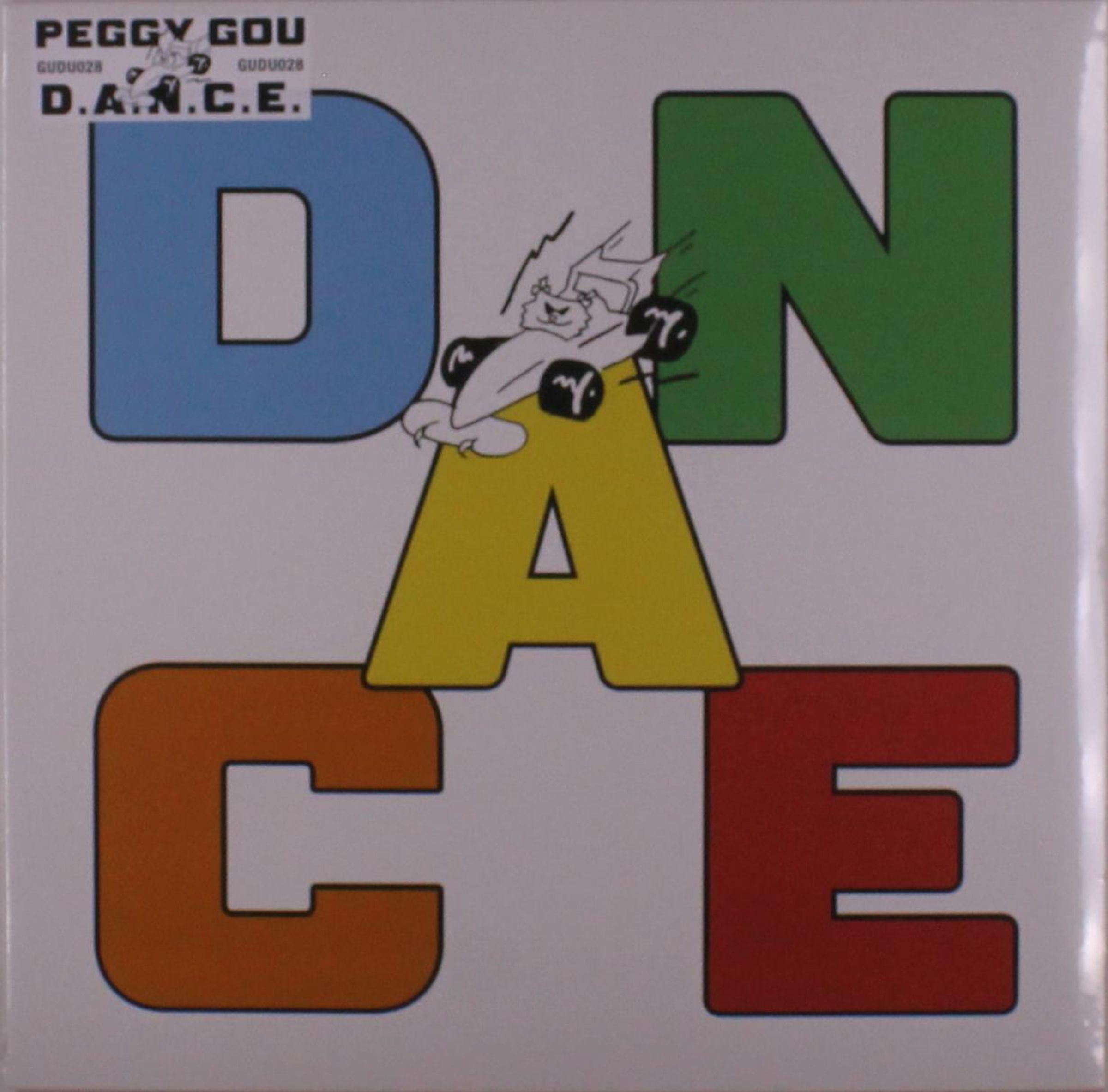 Text: "Peggy Gou" und "D.A.N.C.E." Die Buchstaben D, N, C, und E sind groß und farbenfroh. Eine Illustration zeigt eine Katze., Single 12"