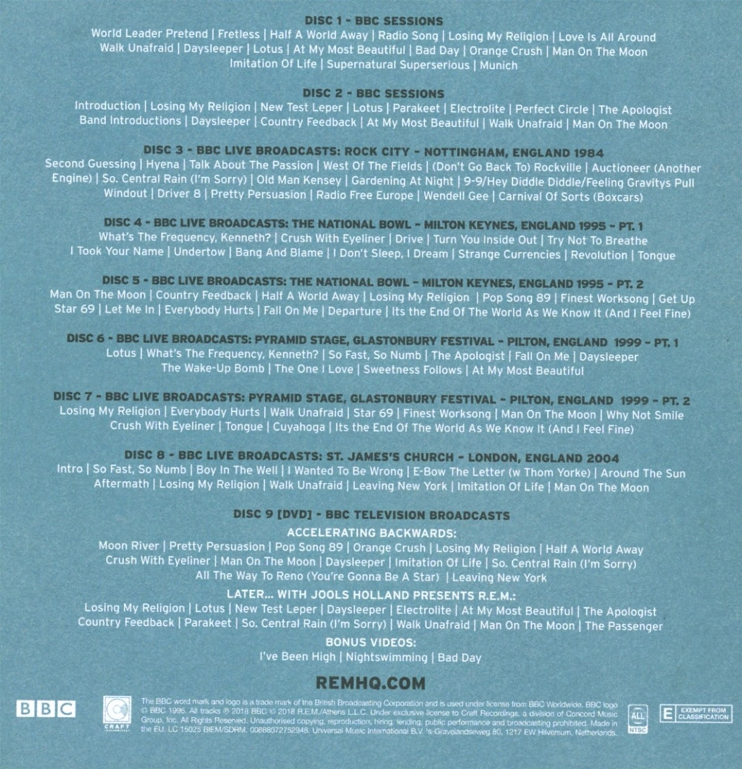 Die DVD, die das Set vervollständigt, beginnt mit der 60-minütigen »Accelerating Backwards«-Dokumentation (die zuvor in Großbritannien ausgestrahlt wurde, aber nie kommerziell erhältlich war) mit Interviews mit Peter Buck, Mike Mills und Michael Stipe. Sie bietet außerdem eine komplette »Later… With Jools Holland«-Episode von 1998, die der Band gewidmet war, plus TV-Auftritte aus »Top Of The Pops« und mehr.