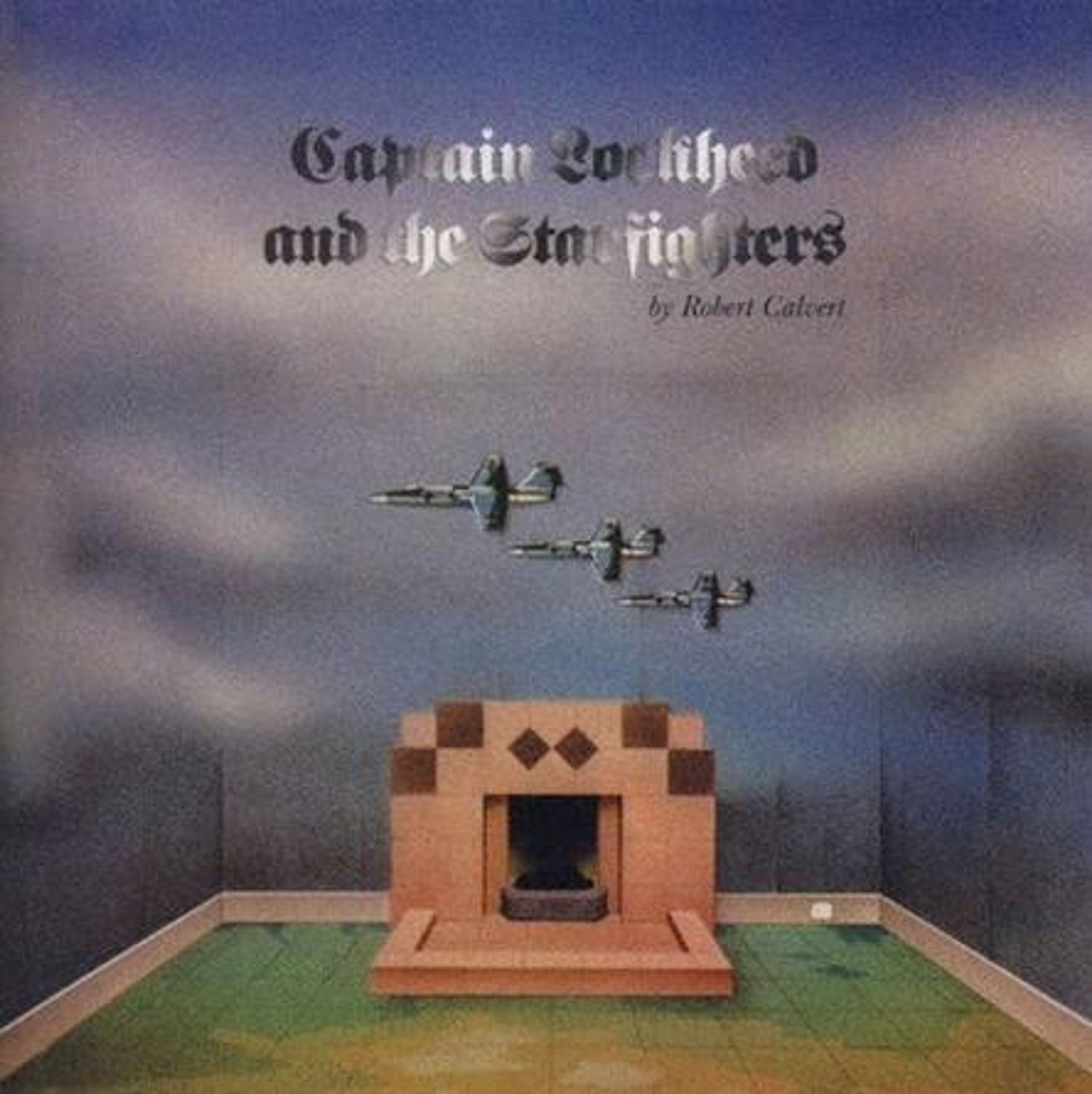 Der Titel lautet: "Captain Lockheed and the Starfighters by Robert Calvert". Es zeigt ein Zimmer mit Flugzeugen an der Wand., CD