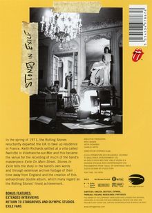 In the spring of 1971 the Rolling Stones departed the UK to take up residence in France as tax exiles. Keith Richards settled at a villa called Nellcôte in Villefranche-sur-Mer and this became the venue for the recording of much of the band’s masterpiece “Exile On Main Street”. “Stones In Exile” tells the story in the band’s own words and through extensive archive footage of their time away from England and the creation of this extraordinary double album, which many regard as the Rolling Stones’ finest achievement. Bonus Features: Extensive additional footage including interviews with all the band members, footage from “Cocksucker Blues” and Mick Jagger and Charlie Watts returning to Olympic Studios and Jagger’s country house Stargroves where a lot of the early work on the album was done.