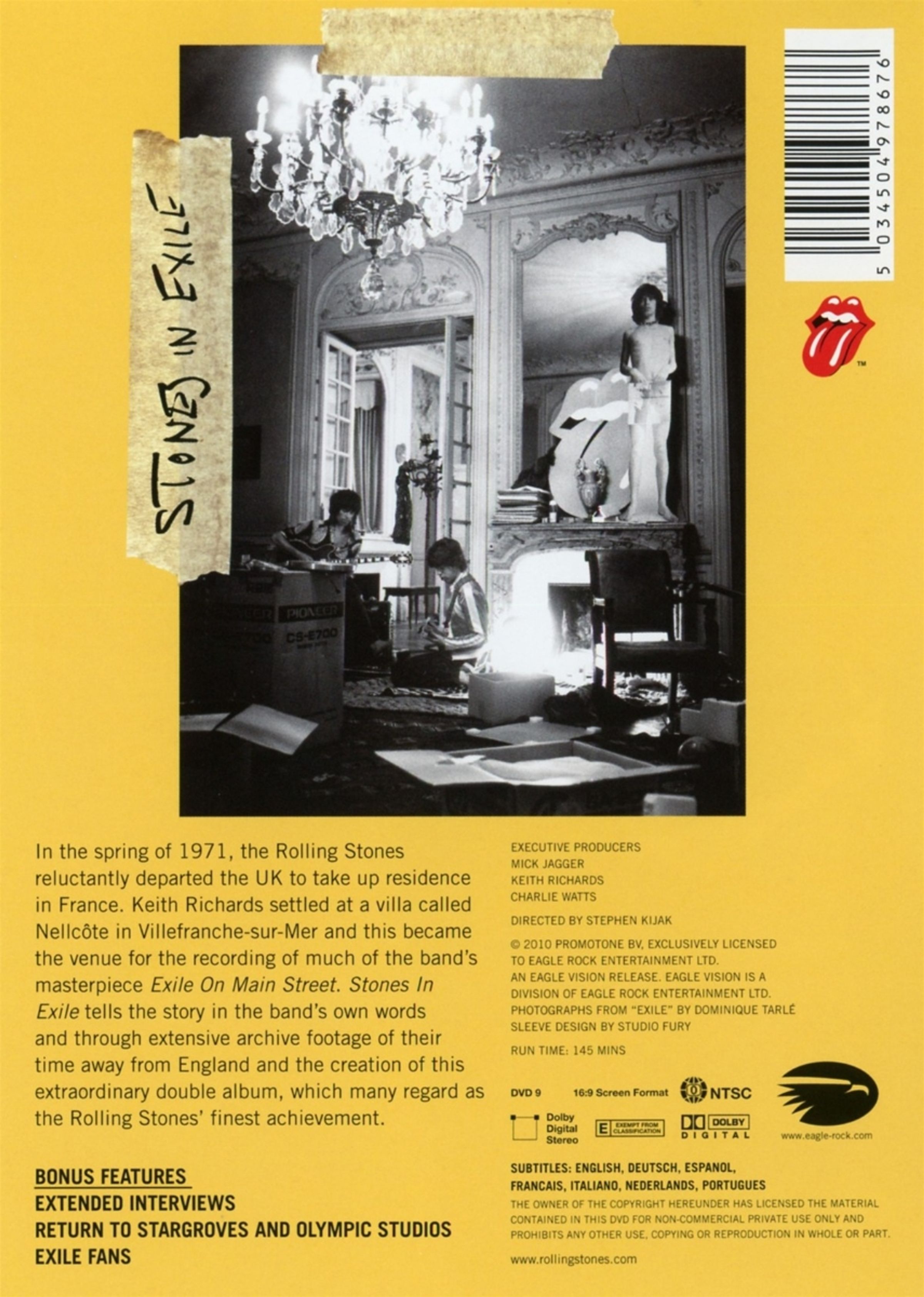 Im Frühjahr 1971 verließen die Rolling Stones als Steuerflüchtlinge ihre Heimat England und siedelten nach Frankreich über. Keith Richards entschied sich für eine Villa namens ´Nellcôte` in Villefranche-sur-Mer, in der anschließend auch die Aufnahmen für das absolute Meisterwerk der Band, ihr Album „Exile On Main Street”, stattfanden. „Stones In Exile” erzählt die Geschichte aus der Sicht der beteiligten Musiker und zeigt umfangreichen Aufnahmen aus dem Archiv der Band während ihrer Abwesenheit in England und der Arbeiten an diesem außergewöhnlichen Doppelalbum, das von Fachleuten als bestes ihrer gesamten Karriere eingestuft wird. Das Bonusmaterial umfasst Interviews mit allen Gruppenmitgliedern Mick Jagger, Keith Richards, Charlie Watts, Bill Wyman und Mick Taylor. Dazu kommt Material von „Cocksucker Blues”, Aufnahmen von Mick Jaggers und Charlie Watts Rückkehr in die ´Olympic Studios` sowie Einblicke in Jaggers Landsitz ´Stargroves`, wo ein Großteil der Vorarbeiten zu diesem Album stattfanden. Darüber hinaus findet man Beiträge von Martin Scorsese, Jack White, Don Was, Caleb Followill (Kings Of Leon), Benicio Del Toro, Will.I.Am (Black Eyed Peas), Sheryl Crow, Anita Pallenberg, Ronnie Wood, Produzent Jimmy Miller, Toningenieur Andy Johns, Fotograf Dominique Tarlé und Saxophonist Bobby Keys. Passend zu dieser spannenden DVD wird im Mai eine neue Edition des Albums mit zuvor unveröffentlichten Bonustracks veröffentlicht, außerdem erscheint im Herbst 2010 der komplett restaurierte Tourfilm „Ladies And Gentlemen…The Rolling Stones”.