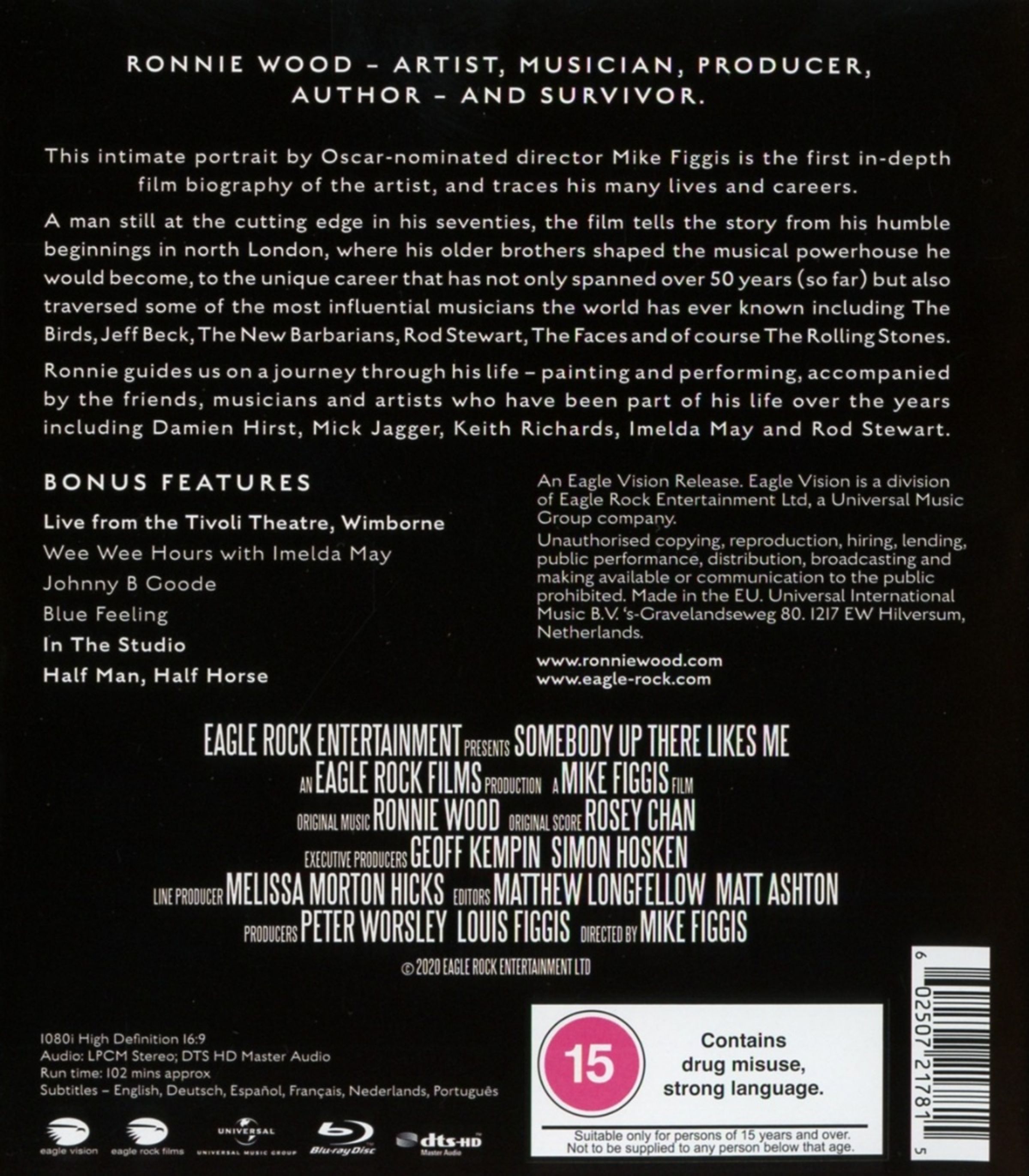 Mit »Somebody Up There Likes Me« erscheint der Film über die 50-jährige Karriere des legendären Gitarristen der Rolling Stones. Der Film über Ronnie Wood wurde vom Oscar-nominierten Regisseur Mike Figgis (Leaving Las Vegas) inszeniert. Der Film lief sowohl beim BFI London Film Festival 2019 als auch beim Tribeca Film Festival 2020.