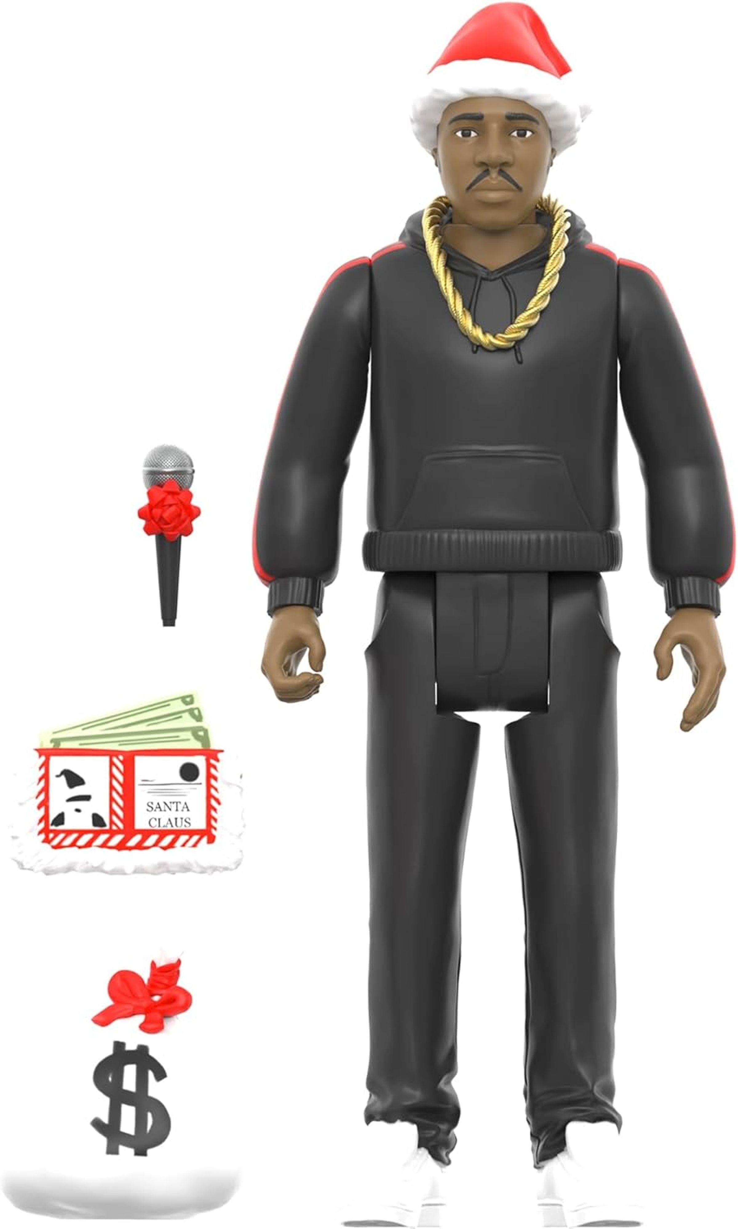 Die RUN DMC ReAction Figur Holiday 3er-Pack ist hier, um etwas von der Urlaubsstimmung von Hollis, Queens direkt in Ihre Sammlung zu bringen. Inspiriert von ihrem beliebten Lied Weihnachten in Hollis, verfügt dieses festliche Box-Set über 9, 5 cm große Figuren von Joseph Simmons, Darryl McDaniels und Jam Master Jay Sporttrainingsanzüge, Weihnachtsmannmützen und Goldketten, mit zwei Mikrofonen mit Geschenkschleifen, einem Sack Bargeld, einer Brieftasche des Weihnachtsmanns und einer "kranken Rentier"-Figur. Feiern Sie die Saison in Gesellschaft des Hip-Hop-Königtums mit dem RUN DMC ReAction Figure Holiday 3er-Pack