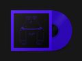 Eine surreale Kreatur mit Flügeln und einem lachenden, sonnenähnlichen Kopf; dunkelblau mit einem roten Umriss., CD