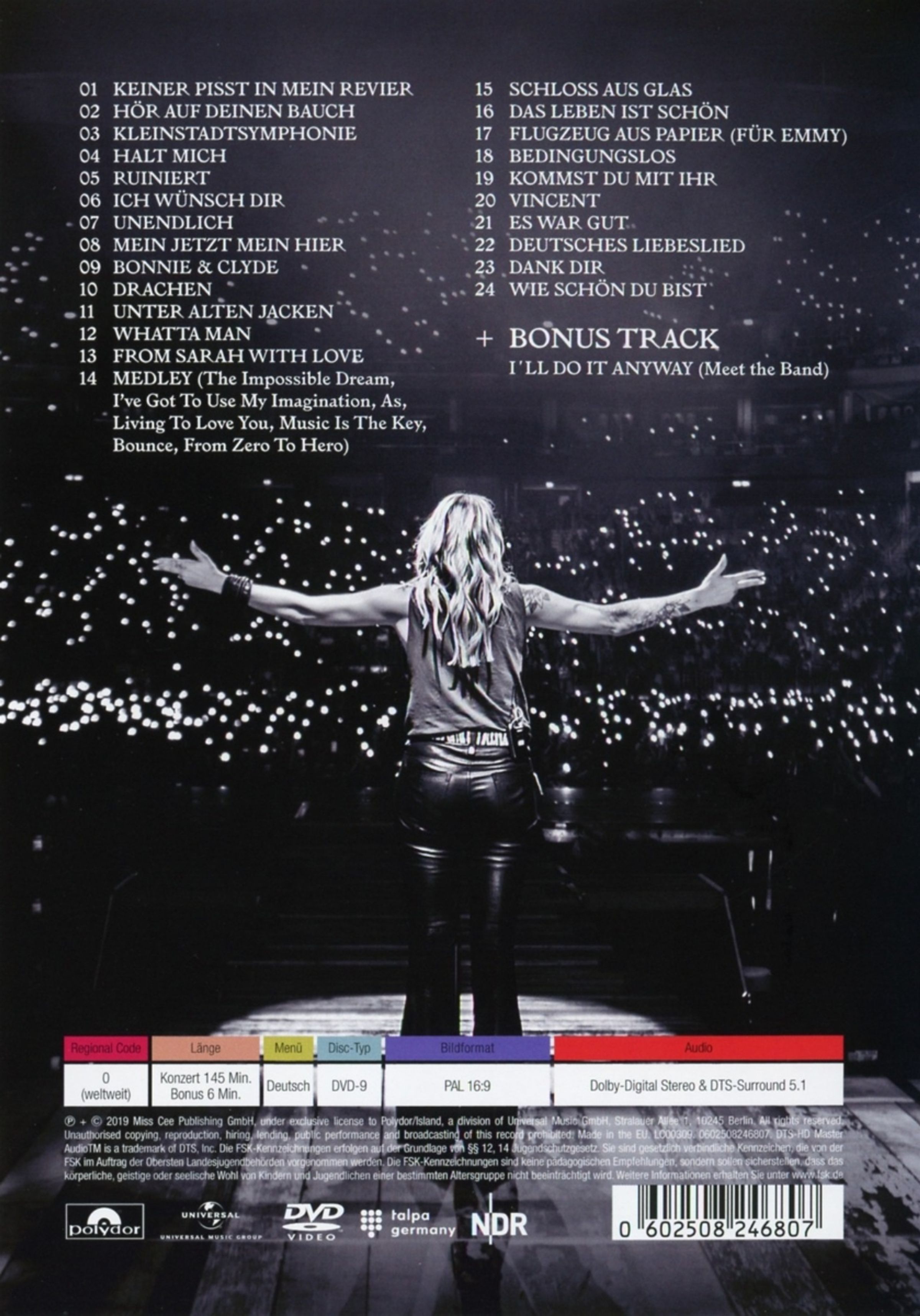 Für alle, die nicht dabei waren oder die Liveenergie der deutschen Sängerin gerne noch einmal erleben wollen, gibt es jetzt ihr Konzertalbum und den Film »Herz Kraft Werke Live«.