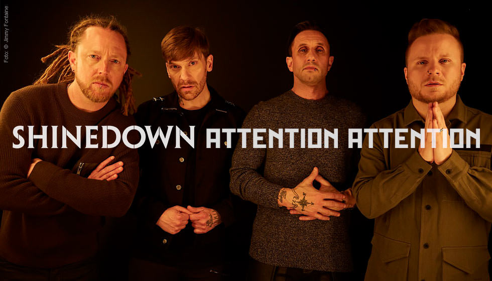 Die vielfach Platin-dekorierte Rockband Shinedown hat ihr sechstes Studioalbum Attention Attention angekündigt. Die Rockband bestehend aus Brent Smith [Gesang], Zach Myers [Gitarre], Eric Bass [Bass, Produktion] und Barry Kerch [Drums], hat in ihrer Karriere viele Rekorde gebrochen – und sie bricht einmal mehr mit den Konventionen und legt ein persönliches, ergreifendes und kraftvolles Werk vor, das sich vom Ruin über das Zurückkämpfen bis zur Offenbarung entwickelt.