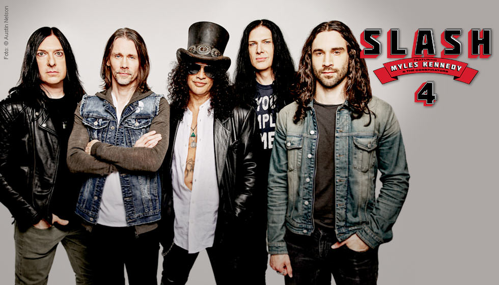 Nach einem Jahrzehnt und vier veröffentlichten Alben lassen sich Slash und Myles Kennedy & The Conspirators (SMKC) von keinem Hindernis auf ihrem Weg stoppen – auch nicht von einer globalen Pandemie. Die Band hat heute, am 22. Oktober, angekündigt, dass ihr neues Album mit dem Titel »4« am 11. Februar 2022 über Gibson Records in Zusammenarbeit mit BMG veröffentlicht wird. »4« ist das fünfte Soloalbum von Slash und das vierte mit seiner Band, bestehend aus Myles Kennedy (Gesang), Brent Fitz (Schlagzeug), Todd Kerns (Bass & Gesang) und Frank Sidoris (Gitarre & Gesang).