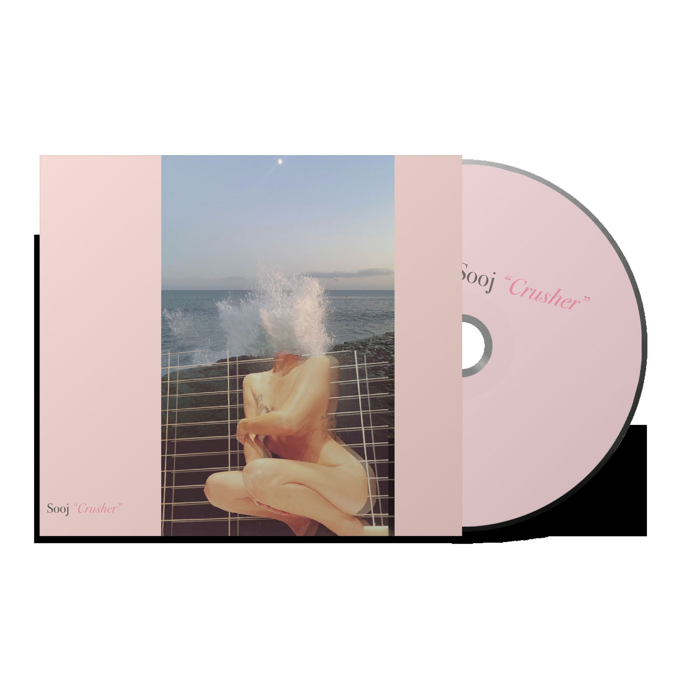 Links unten steht „Sooj 'Crusher'“. Es zeigt eine nackte Person, deren Kopf von einer Welle überspült wird, vor einem Meer., CD