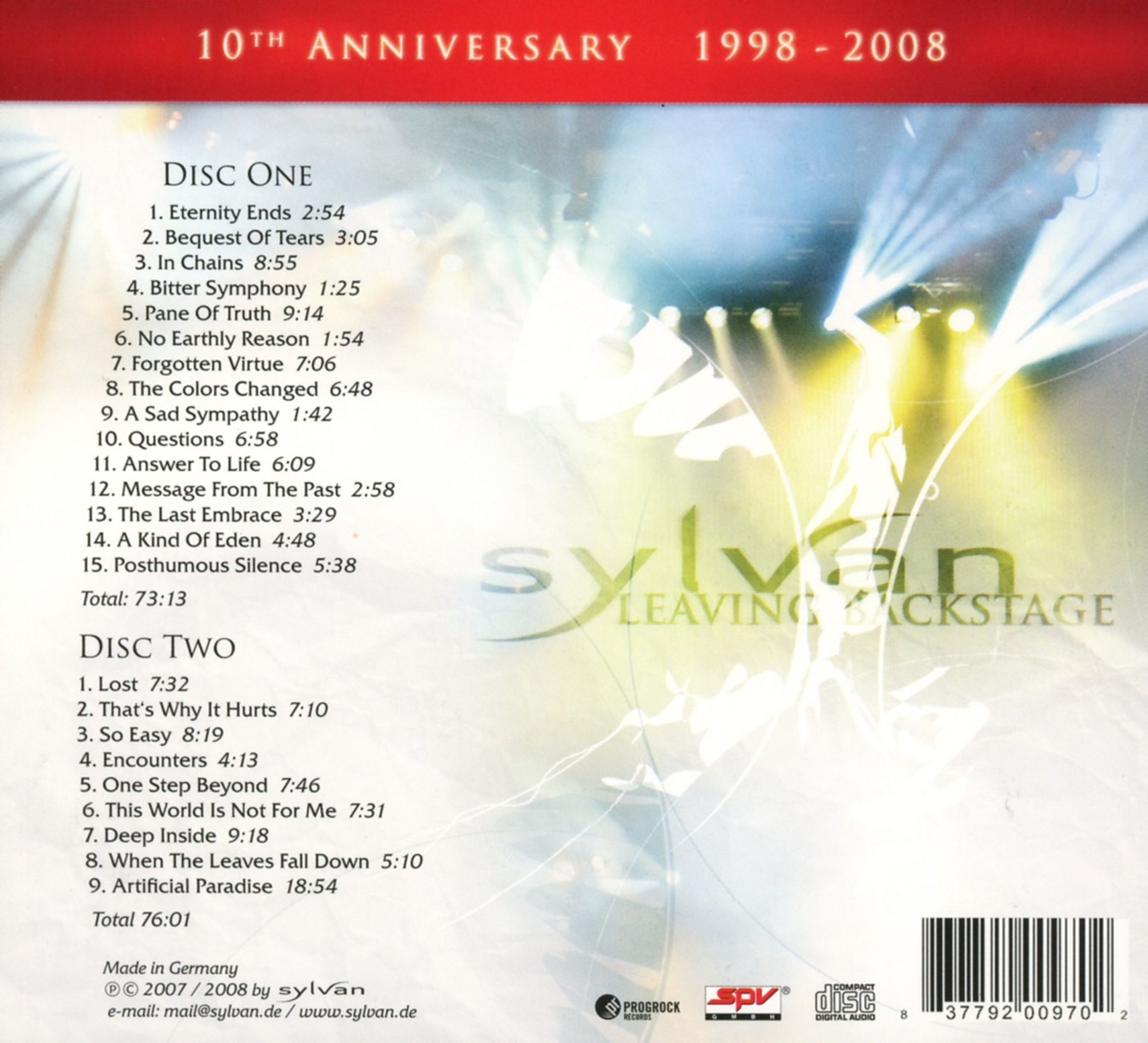 Sylvan: Leaving Backstage - Live 2007: 10th Anniversary 1998 - 2008 auf 2 CDs