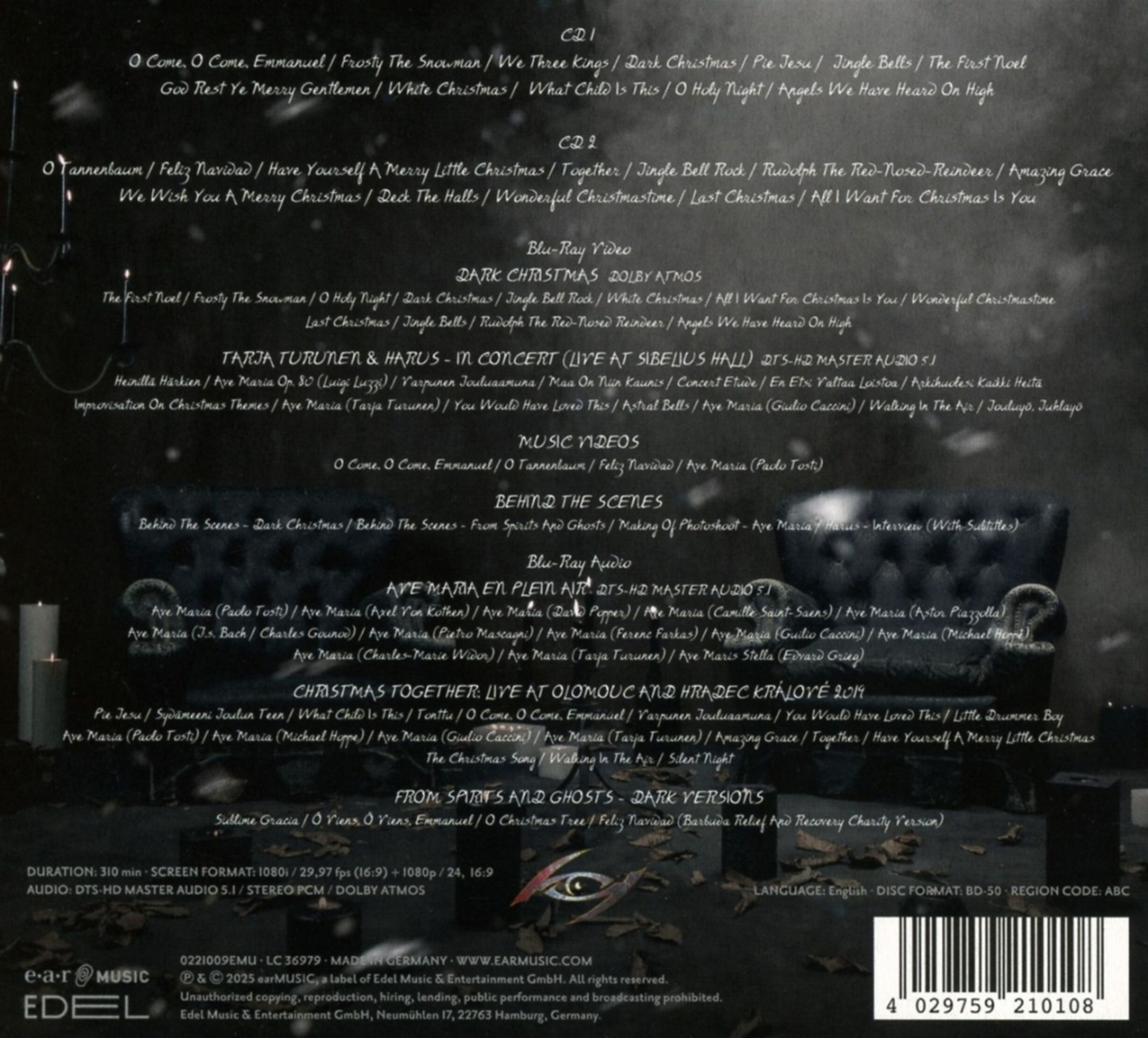»Score for a Dark Christmas« erscheint als ltd. schwarz/ weiß marmoriertes 2LP Gatefold sowie als ltd. 2CD + Blu-ray Digipak mit einer Spielzeit von über 5h.