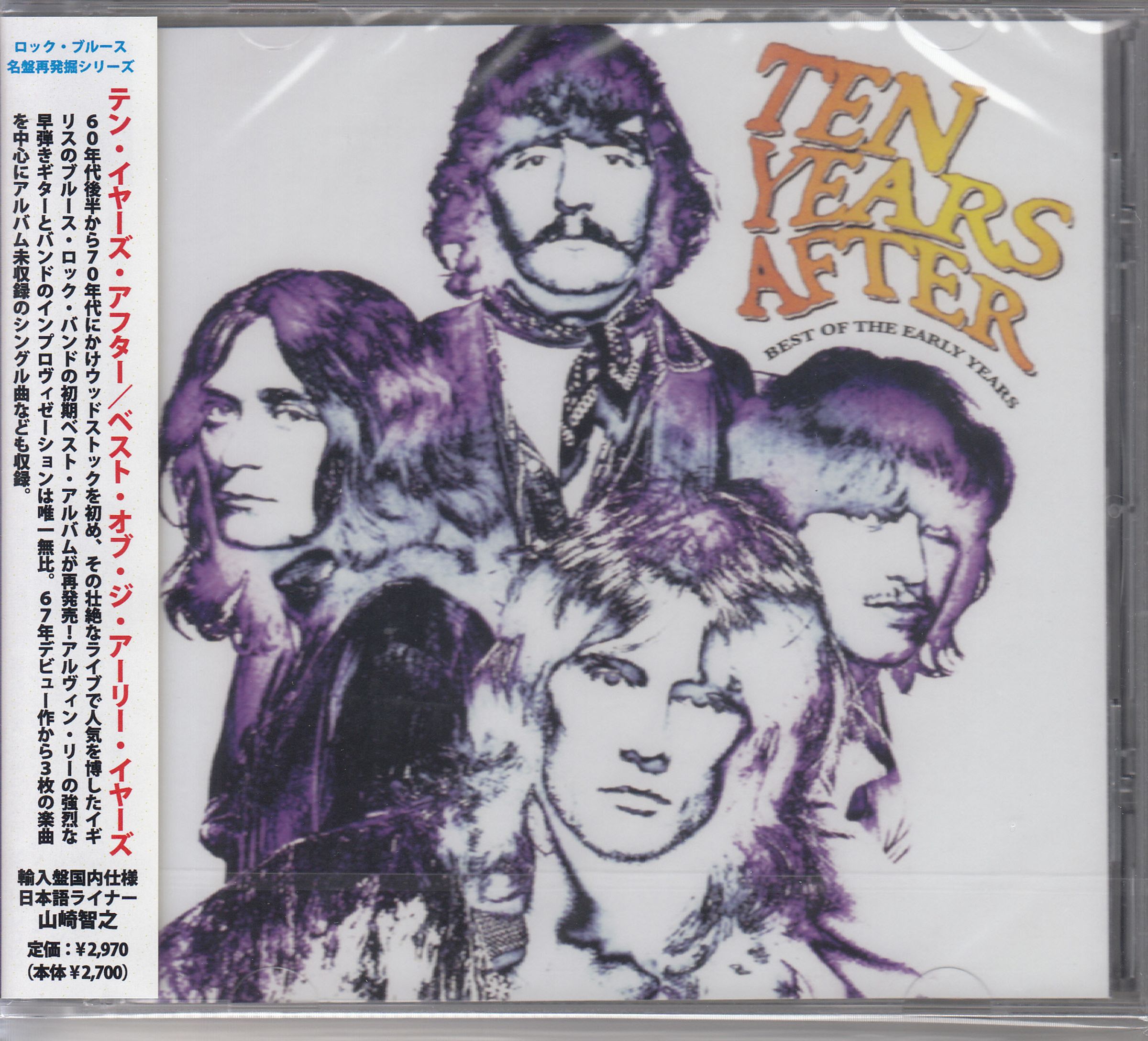 "Ten Years After: Best of the Early Years." Illustration von vier Männern, teils farbig, mit japanischem Text links., CD