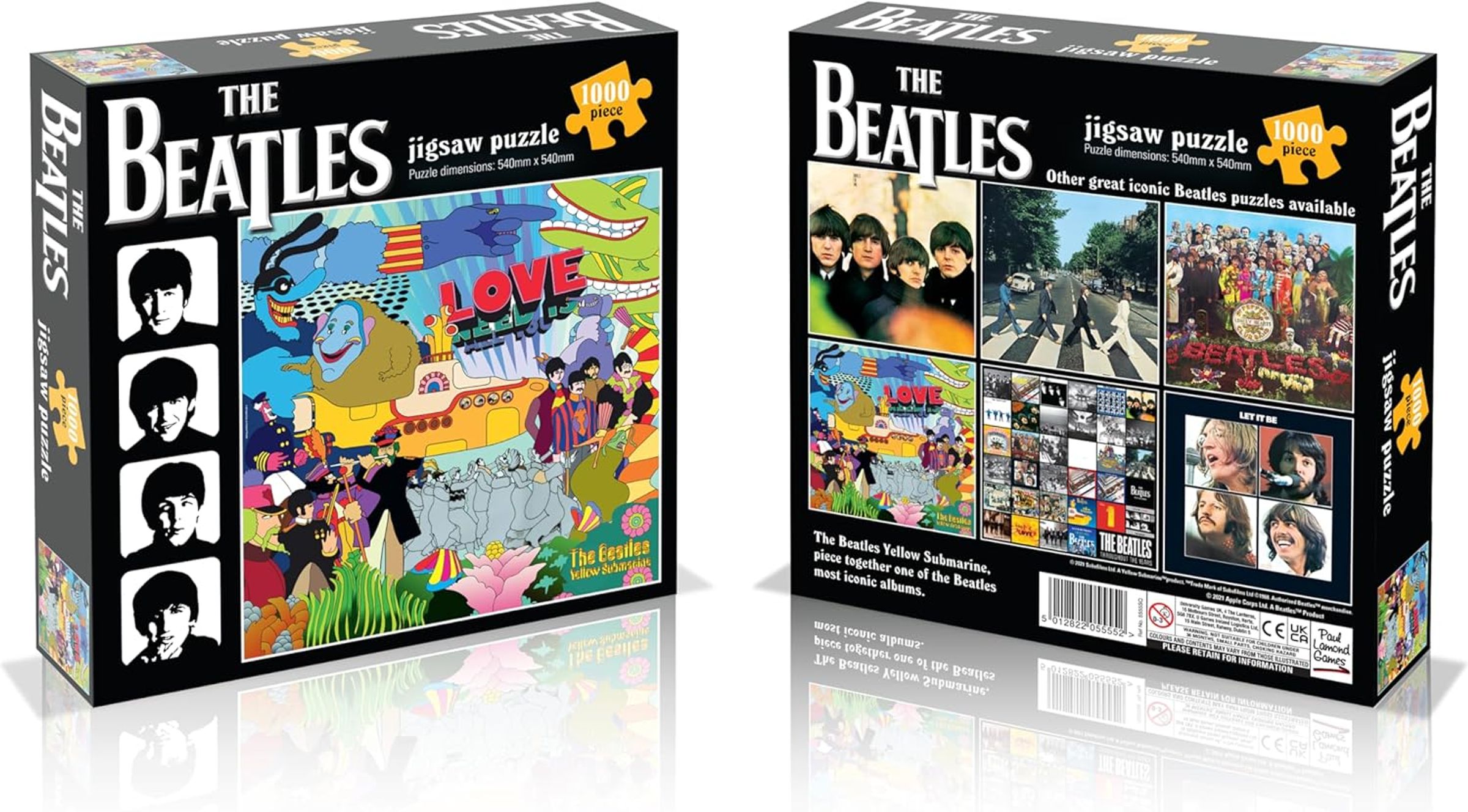 "The Beatles", 1000-teiliges Puzzle. Buntes, psychedelisches Design mit einem gelben U-Boot und den Bandmitgliedern., Merchandise