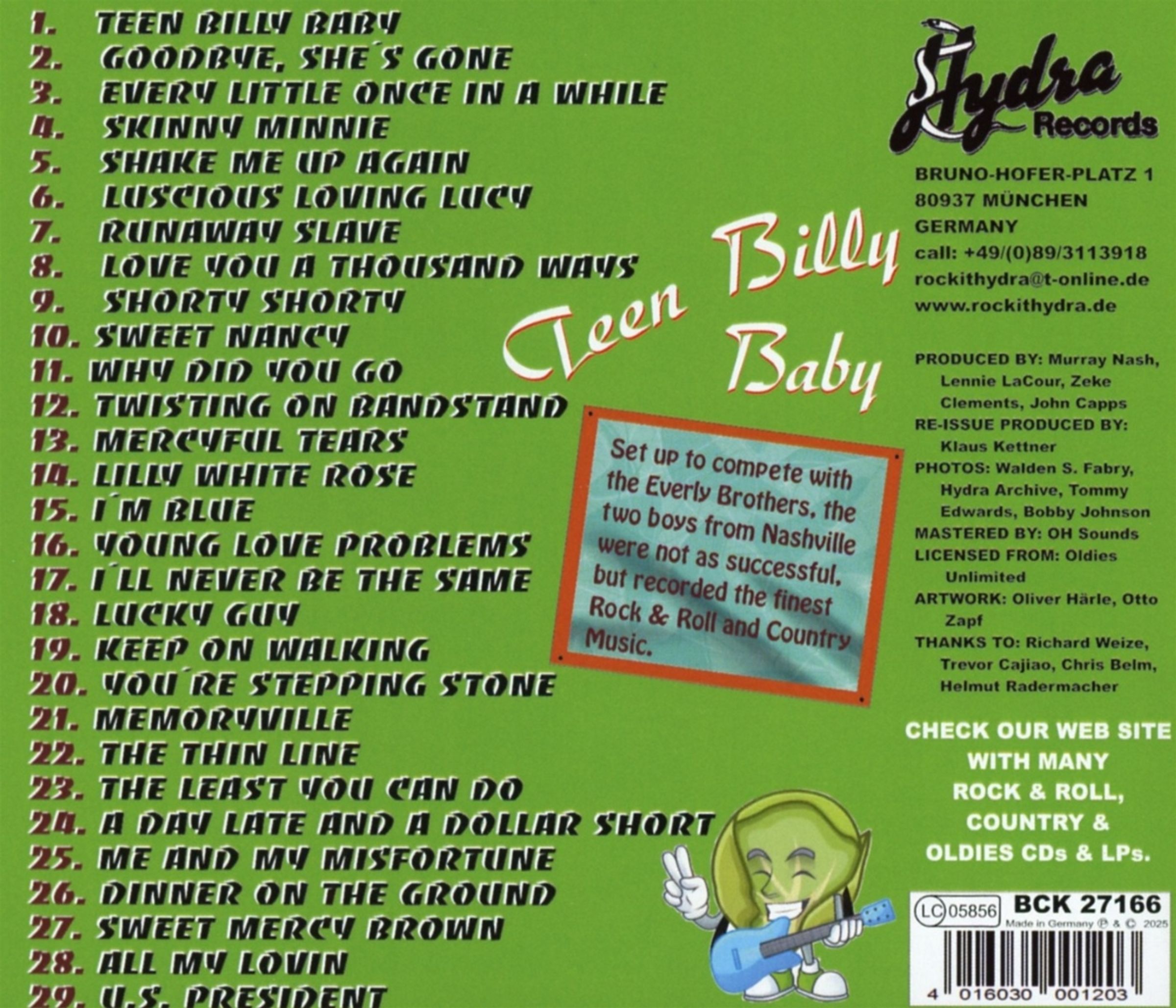 Seit 1951 machten William David Cosby und Bobby Region Johnson gemeinsam Musik, der durchschlagende Erfolg der Everly Brothers ab 1957 inspirierte ihr neues Label RCA dazu, sie als Teenpop-Duo zu vermarkten, was mit der Single »Goodby, She's Gone« soweit gelang, dass diese sogar international veröffentlicht wurde. Hier sind 29 ihrer Songs, erstmals zusammengestellt.