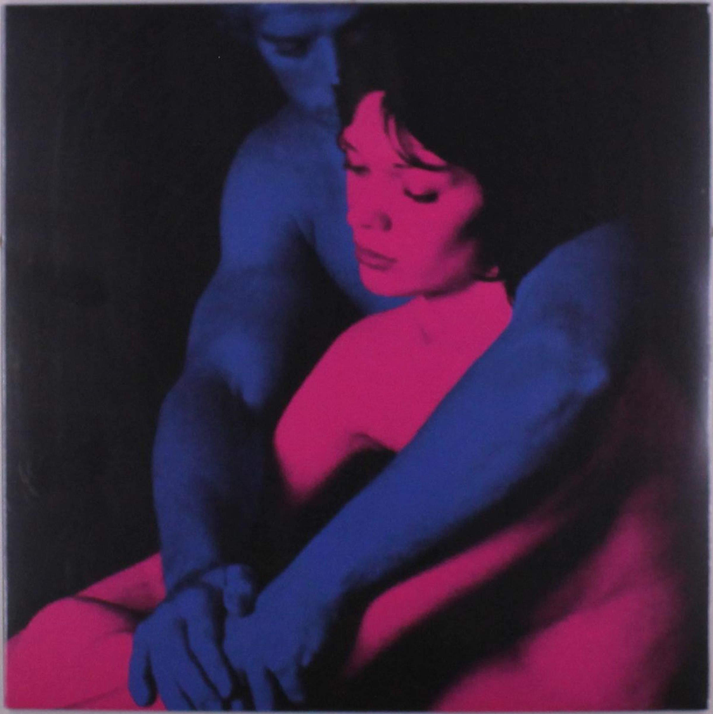 Keine Texte erkennbar. Ein Paar in intensiven Farben, der Mann in Blau, die Frau in Pink, eng umarmt vor schwarzem Hintergrund., LP