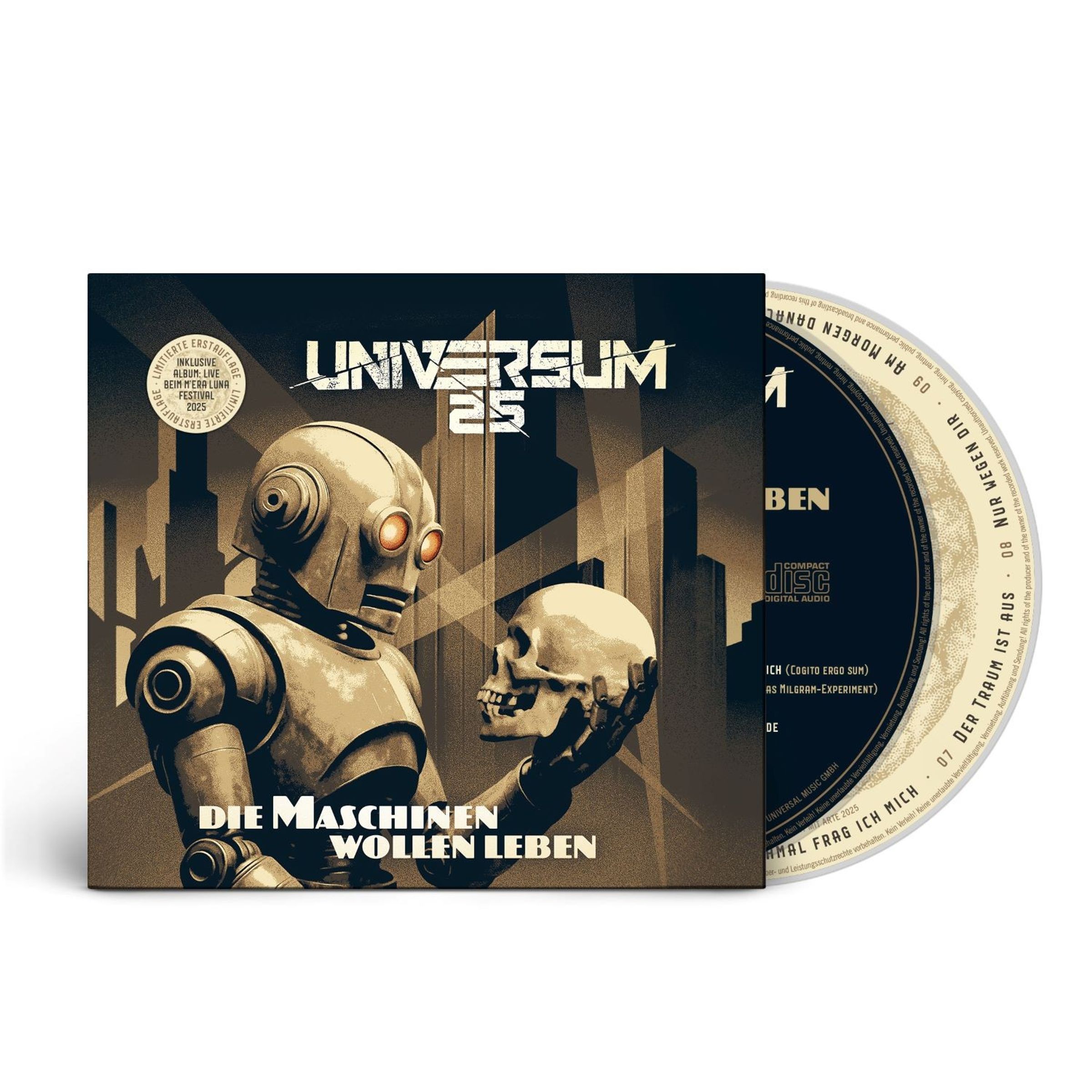 Zur Erstauflage gibt es zusätzlich zur Album-CD eine Doppel-CD im Digipack mit dem kompletten Livekonzert von UNIVERSUM25 auf dem Mera Luna Festival aus dem Jahr 2025.