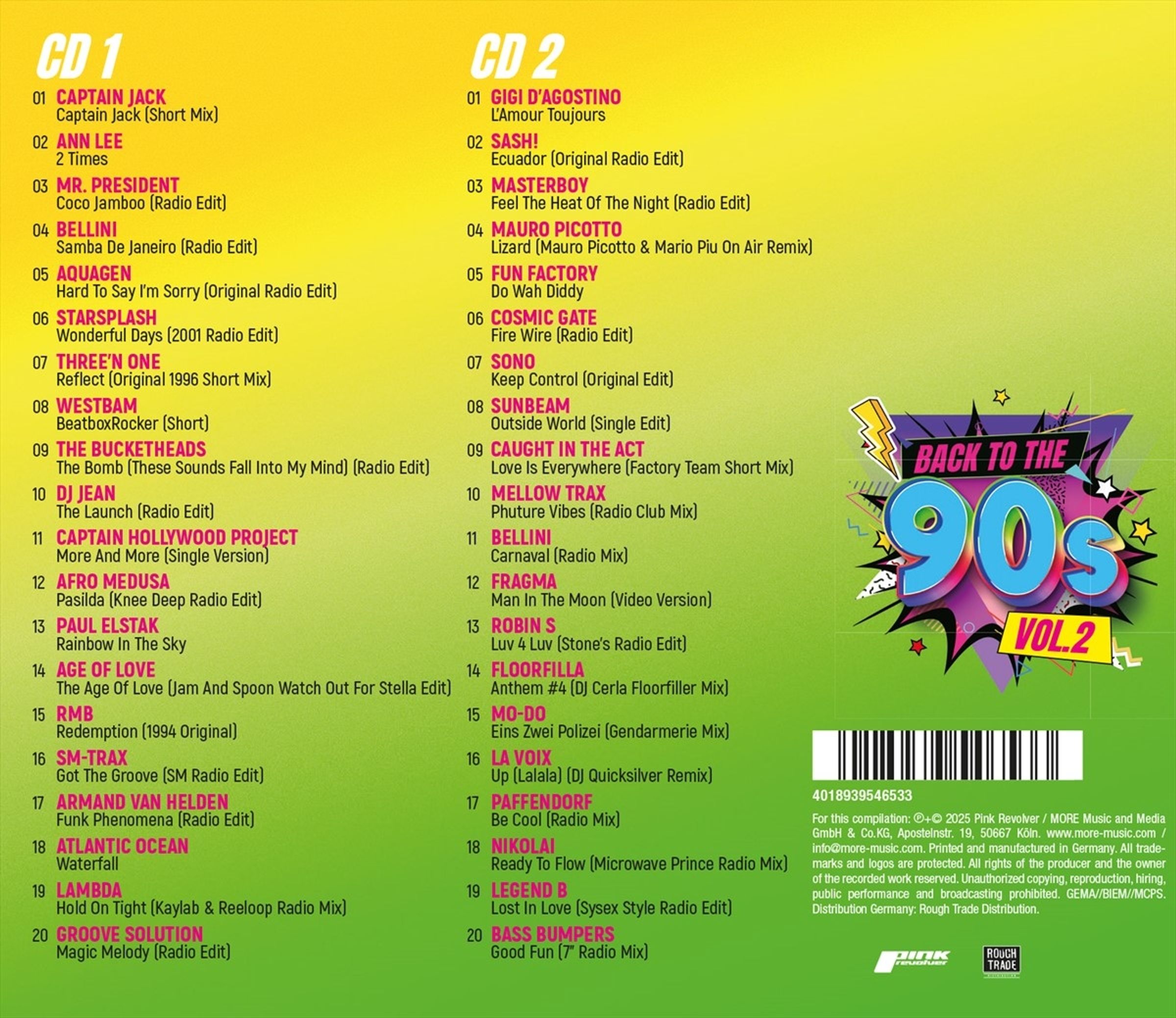 »Back To The 90S & 00S – The Greatest Hits« feiert die größten Hits der 90er und 00er Jahre – zwei Jahrzehnte in einer Compilation. Von Eurodance über Techno bis House featured diese brandneue 2CD-Box eine sorgfältige Auswahl an echten Hits und Classics, die auf jeder Party für volle Tanzflächen und ansonsten für gute Laune sorgen.