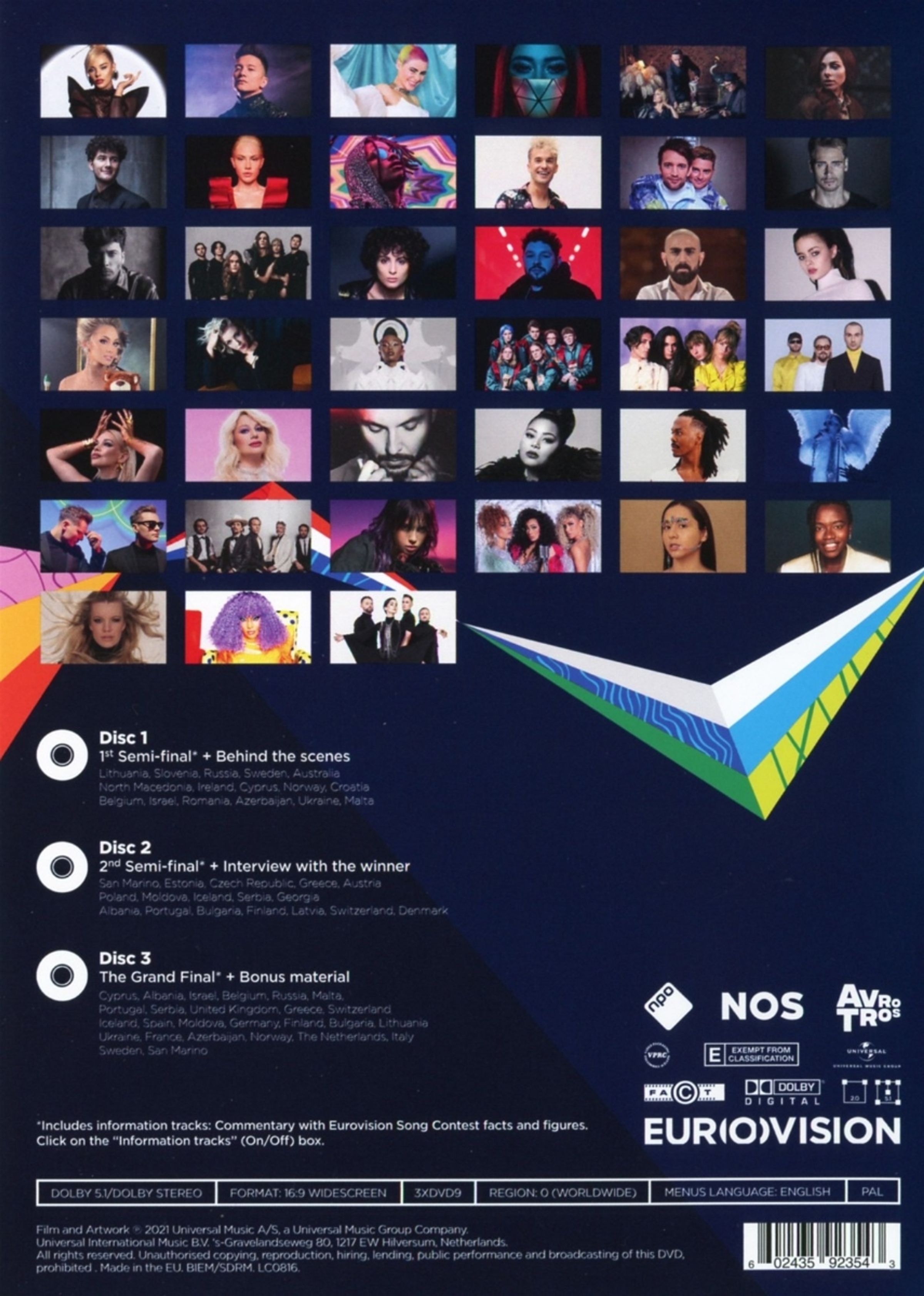 Die Siegertrophäe konnte diesmal Italien entgegen nehmen, die die römische Rockband Måneskin ins Rennen schickte. Mit ihrer wilden Performance konnte sie Jurys und Publikum gleichermaßen überzeugen. Auf der 3-DVD befinden sich beide Halbfinals sowie die große Final-Show vom 22. Mai.
