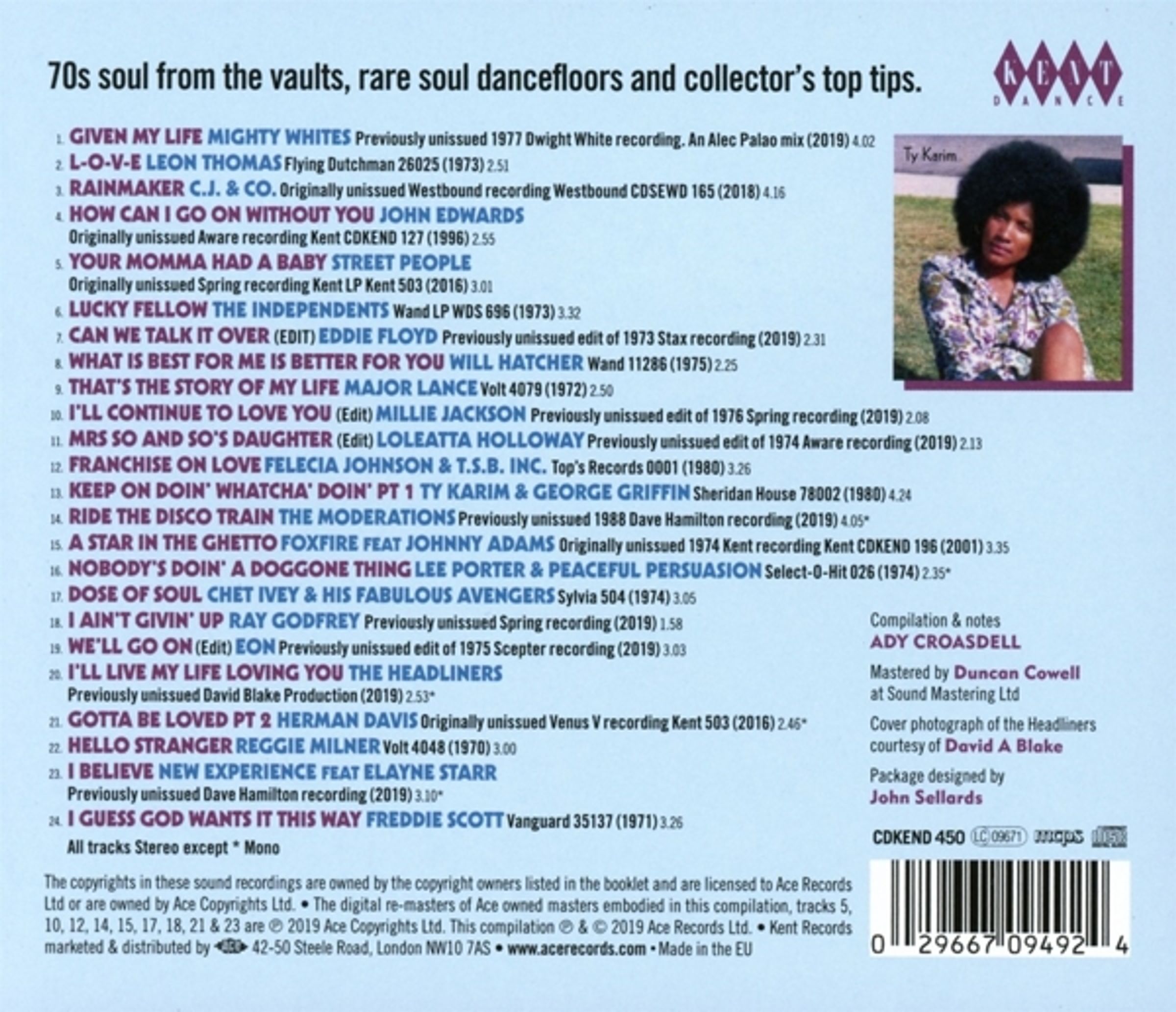 - Full of exclusive gems like the Mighty Whites’ unreleased master ‘Given My Life’ from Los Angeles which would eventually see life in an inferior recording by Brotherhood on MCA in 1978. It’s been played on acetate across Europe and is widely admired. A more modern version of ‘Rainmaker’, as popularised on Kent LPs in the 80s, is featured by Detroit’s C. J. & Co. and that city also provides a fabulous groove on ‘Ride The Disco Train’, a never-heard-before secular update of the ever-popular Tolbert Family gospel 45.