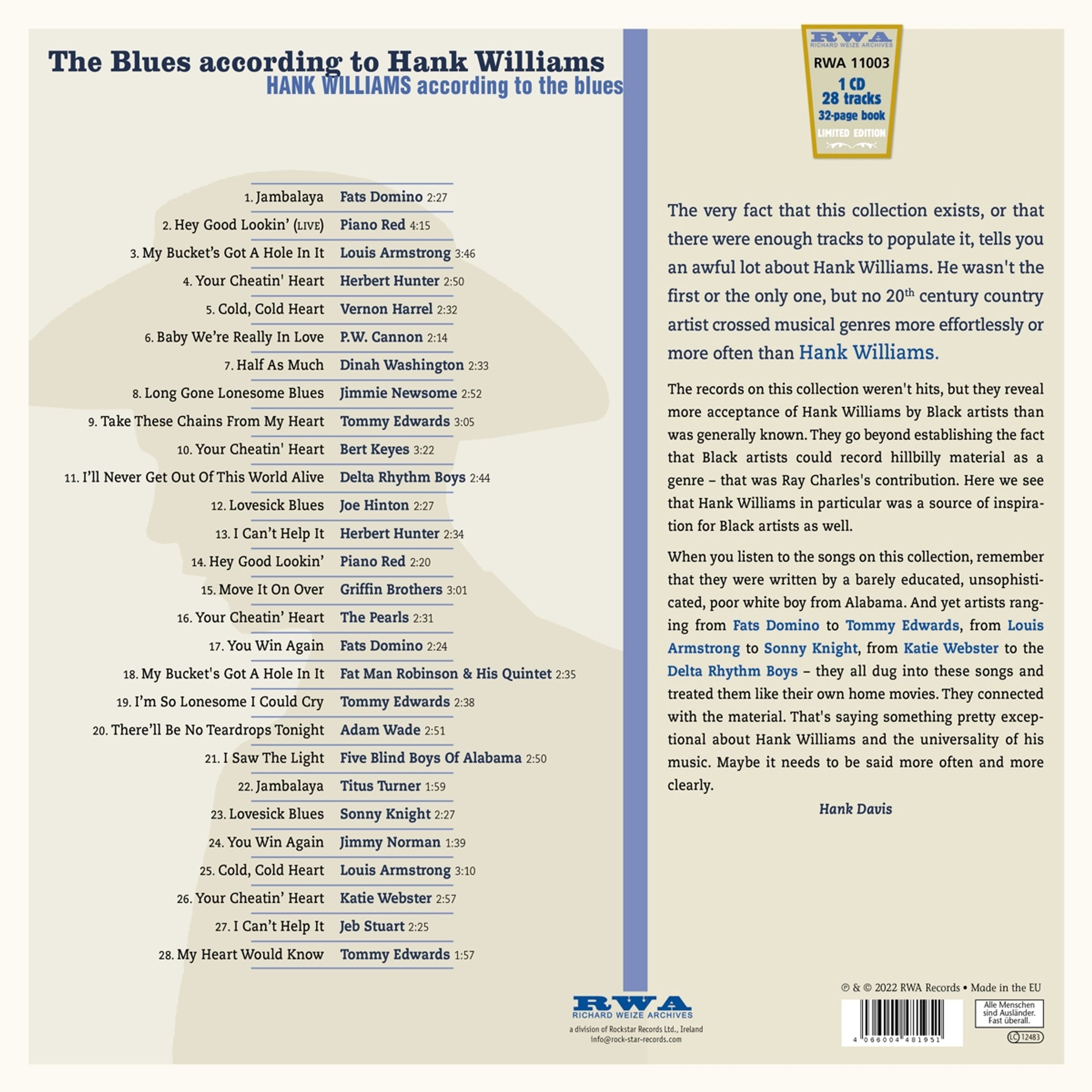 »Die Compilation THE BLUES ACCORDING TO HANK WILLIAMS beleuchtet zum ersten Mal eine besondere Seite dieses Ausnahmekünstlers: die Adaption seiner Kompositionen durch schwarze Musiker.« (Good Times, Dezember 2022 / Januar 2023)Disk 1 von 1 (CD)