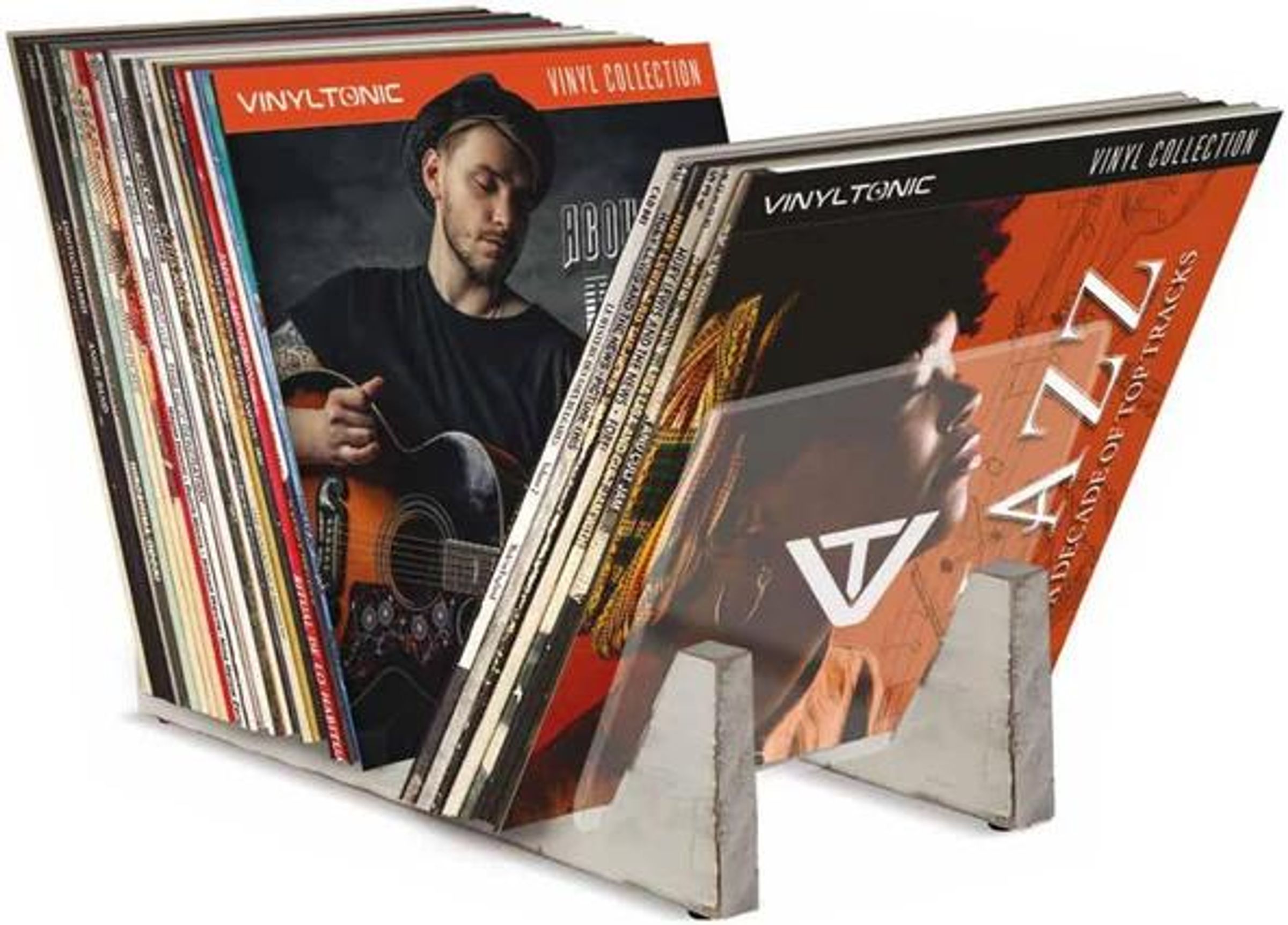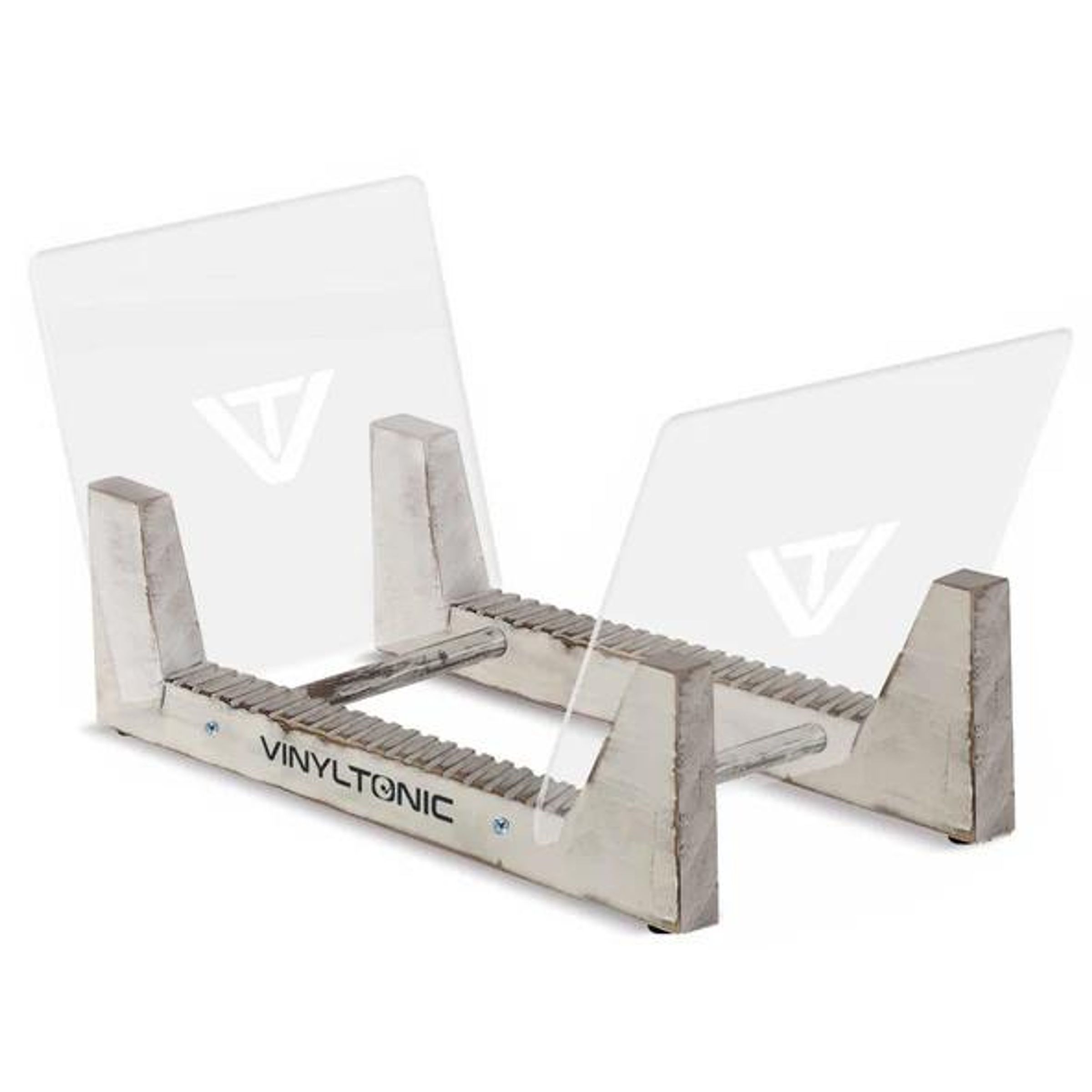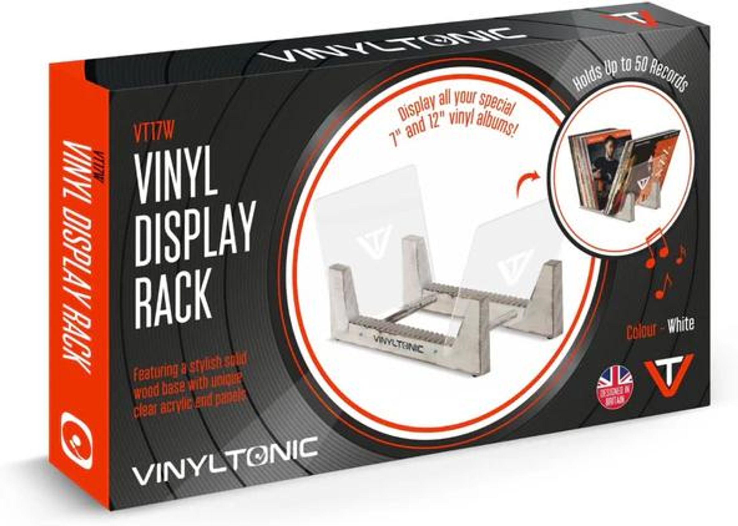Das Vinyl Tonic Präsentationsregal verfügt über eine stilvolle Massivholzbasis mit einzigartigen klaren Acryl-Endplatten, um alle Ihre speziellen 17,8 cm und 30,5 cm Vinylalben zu präsentieren. Das Präsentationsregal bietet Platz für bis zu 50 Schallplatten. Alle Produkte haben ethisch unbedenkliches Holz und FSC-zertifiziert.