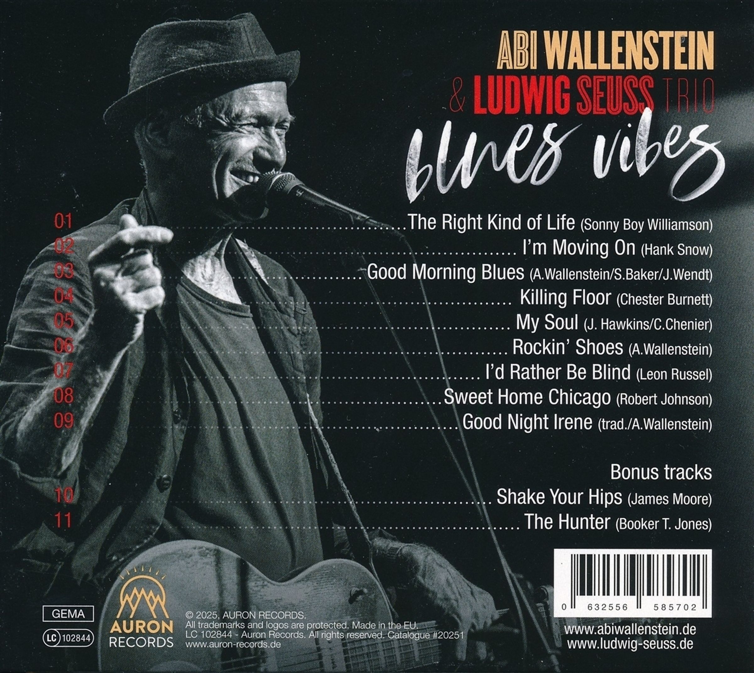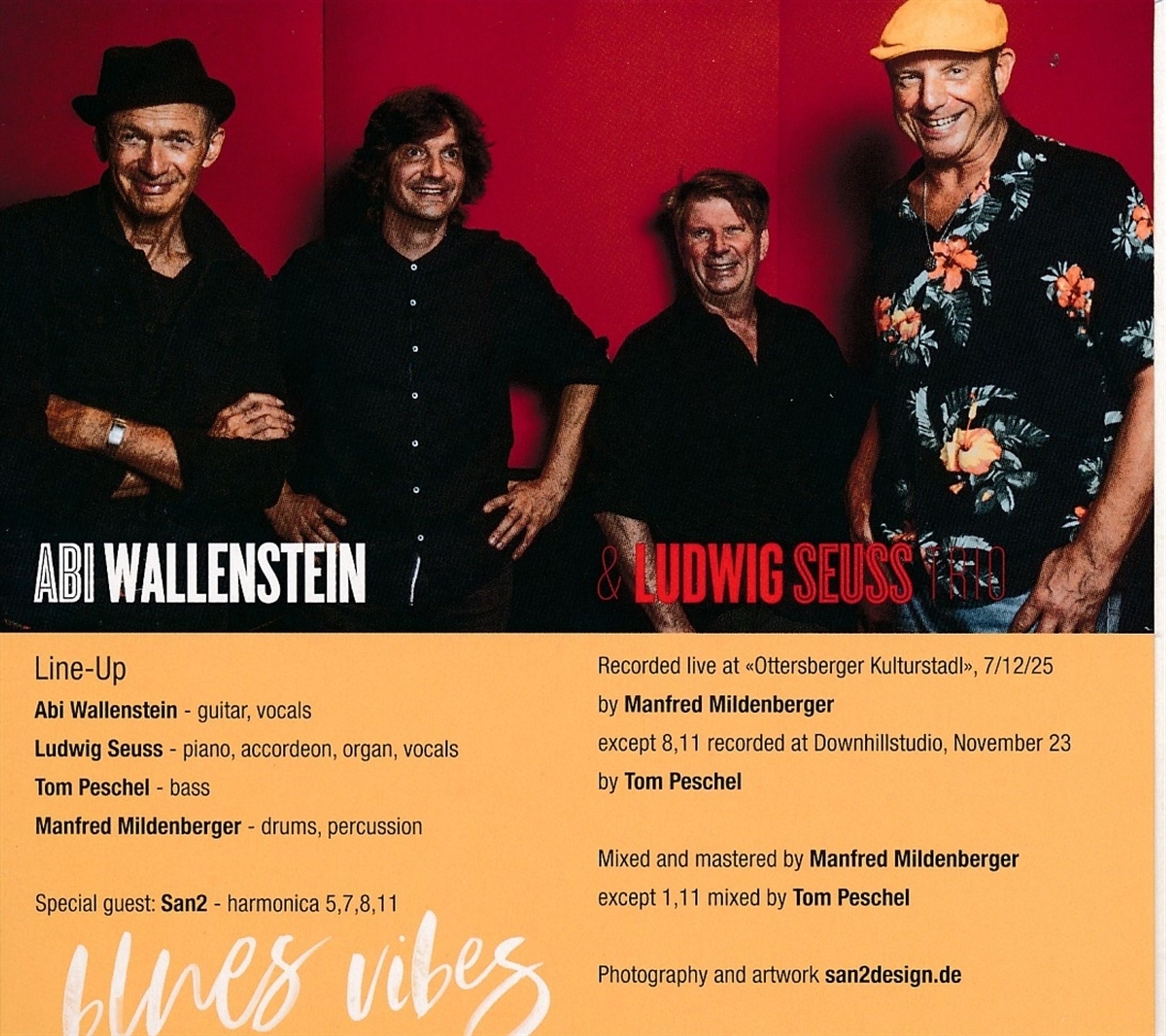 »Blues Vibes« ist tatsächlich das erste gemeinsame Album von Abi Wallenstein und Ludwig Seuss, obwohl die beiden Granden des Blues-Genre schon seit Jahren immer wieder zusammen auf der Bühne stehen. Neben zwei Tracks aus dem Studio kommt das Album als Live-Mitschnitt daher und überträgt so die Energie und den unwiderstehlichen Groove der Band direkt und ungefiltert. Unterstützt werden die beiden von den in der Szene nicht minder bekannten Manfred Mildenberger an den Drums und Tom Peschel am