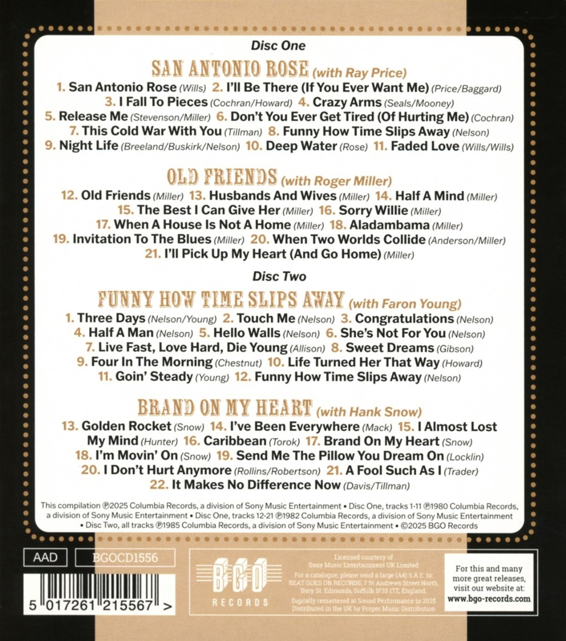 Willie Nelson: San Antonio Rose / Old Friends/Brand On My Heart / Funny How Time Slips Away auf 2 CDs