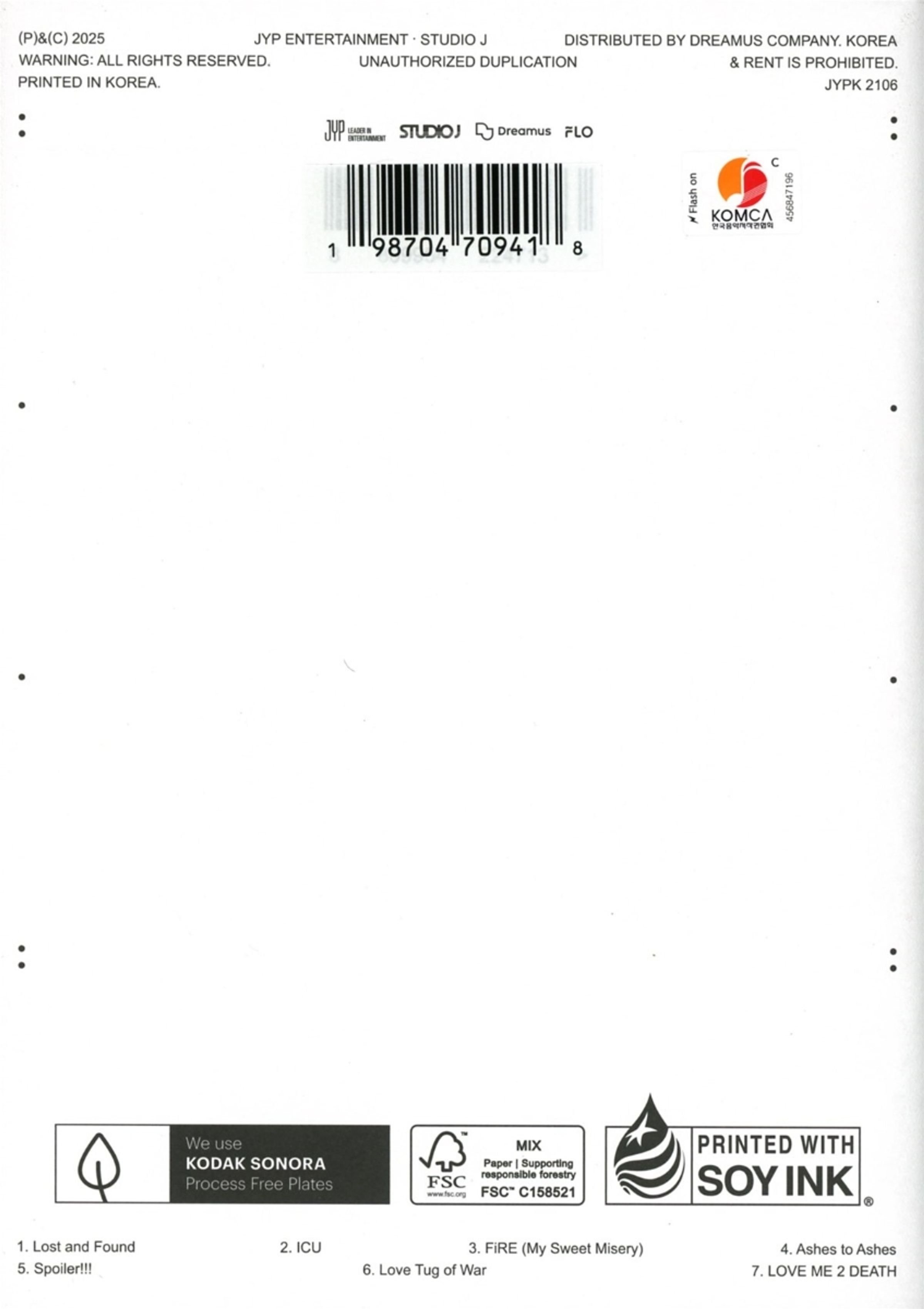"Xdinary Heroes 7th Mini Album: LIVE to DEATH" in Rot. ASCII-Herz oben mittig. Verschiedene kleine Texte unten., 1 CD und 1 Buch