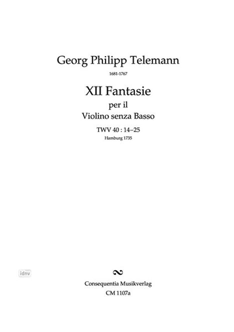 Georg Philipp Telemann: 12 Fantasien für Violine solo TWV 40:14-25