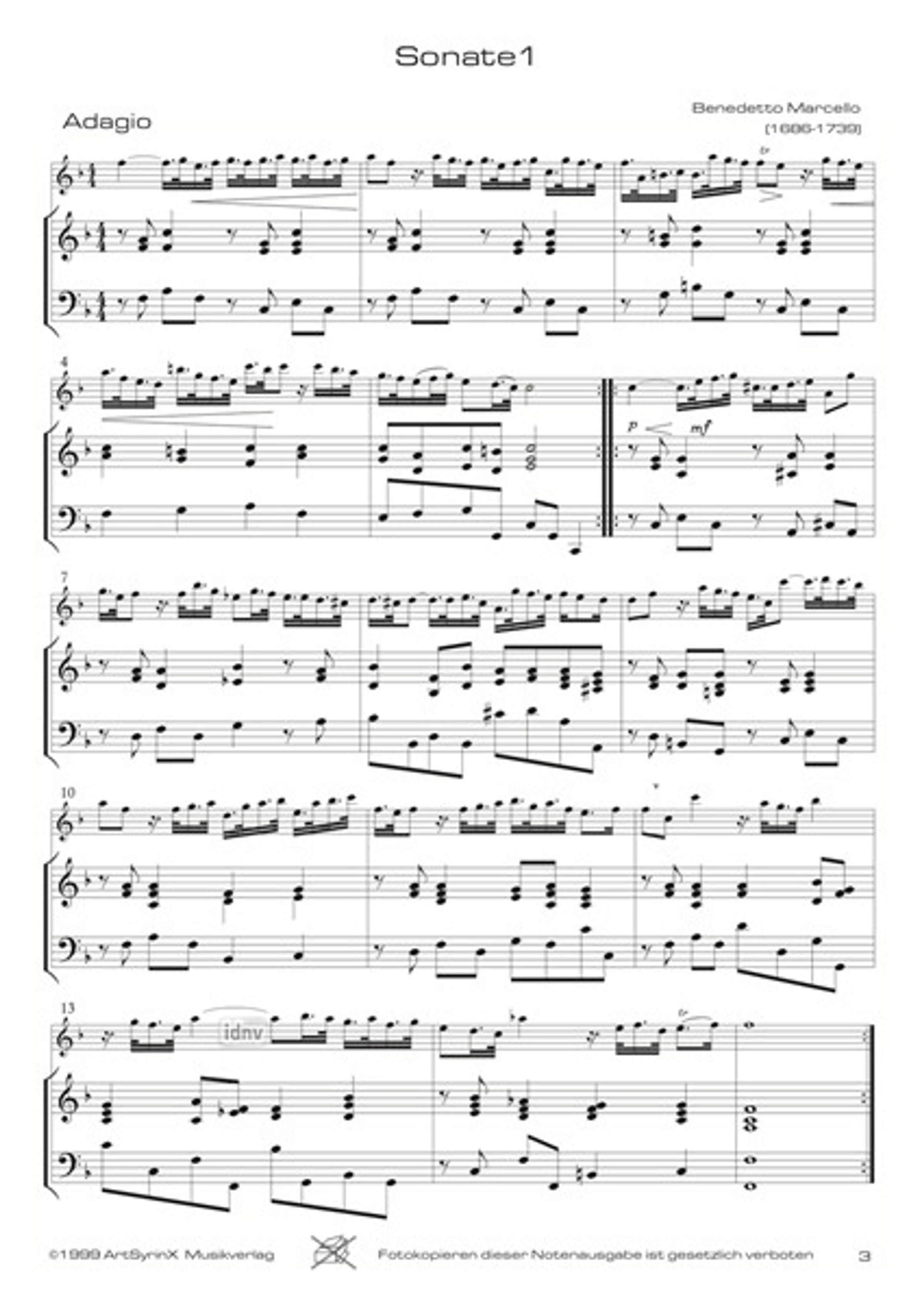 Benedetto Marcello: 12 Sonaten für Flöte und B.c. op. 2, Noten, Noten