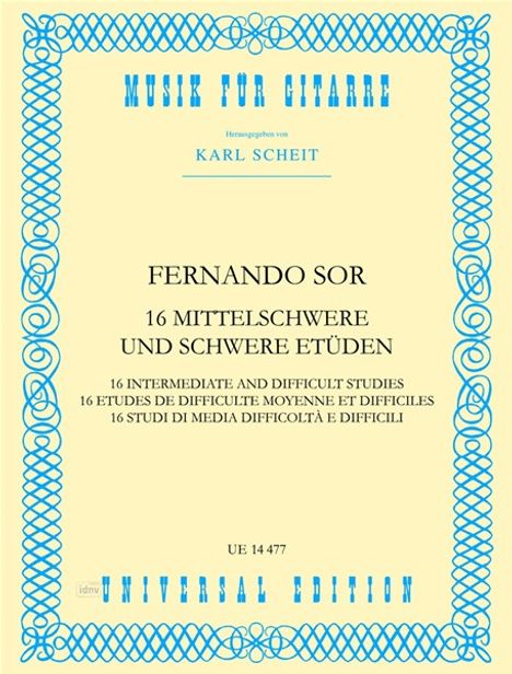 Fernando Sor: 16 mittelschwere und schwere Etüden für Gitarre aus op.6, 29, 31