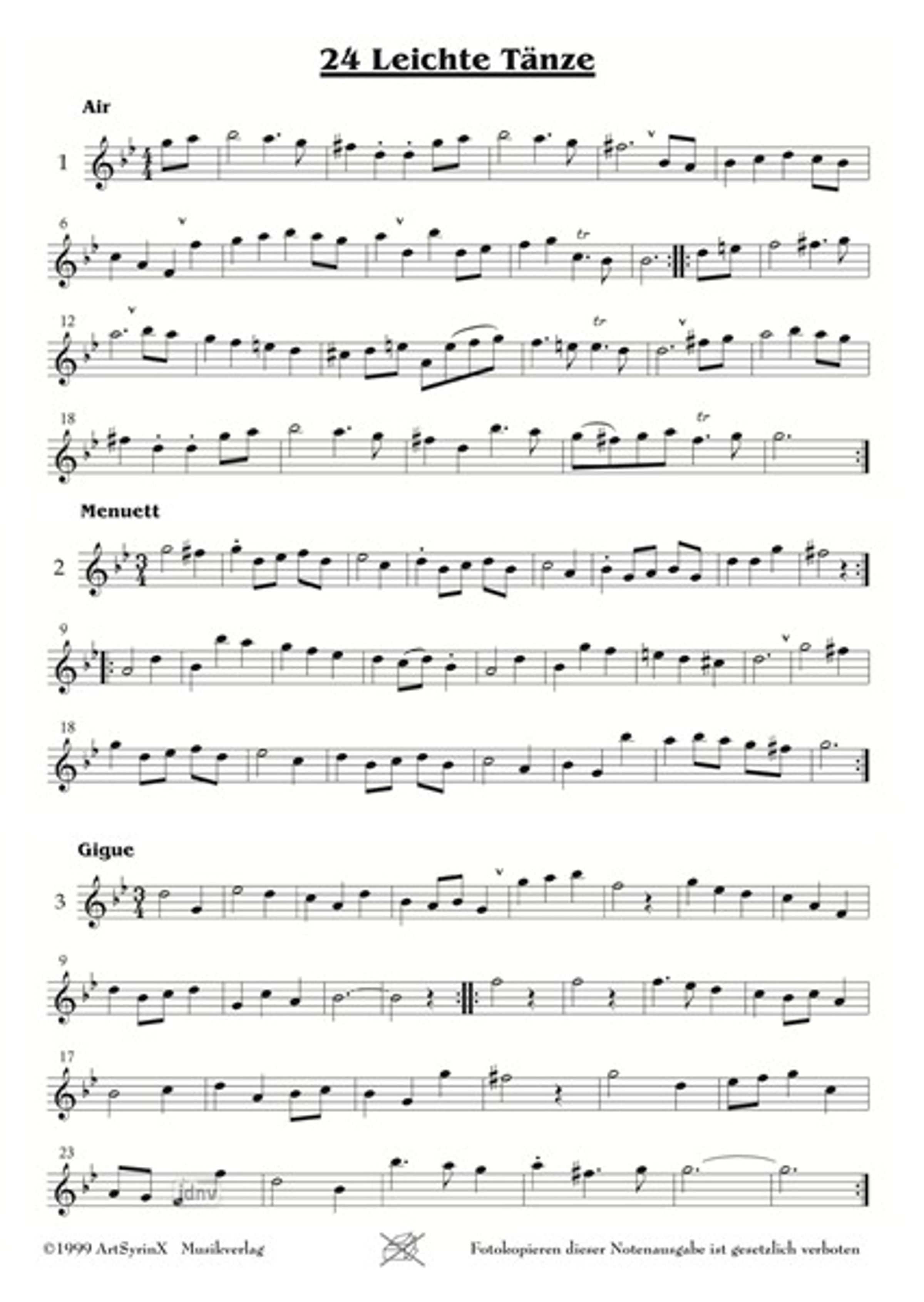 Anonym: 24 Leichte Tänze für Flöte und Klavier, Noten, Noten