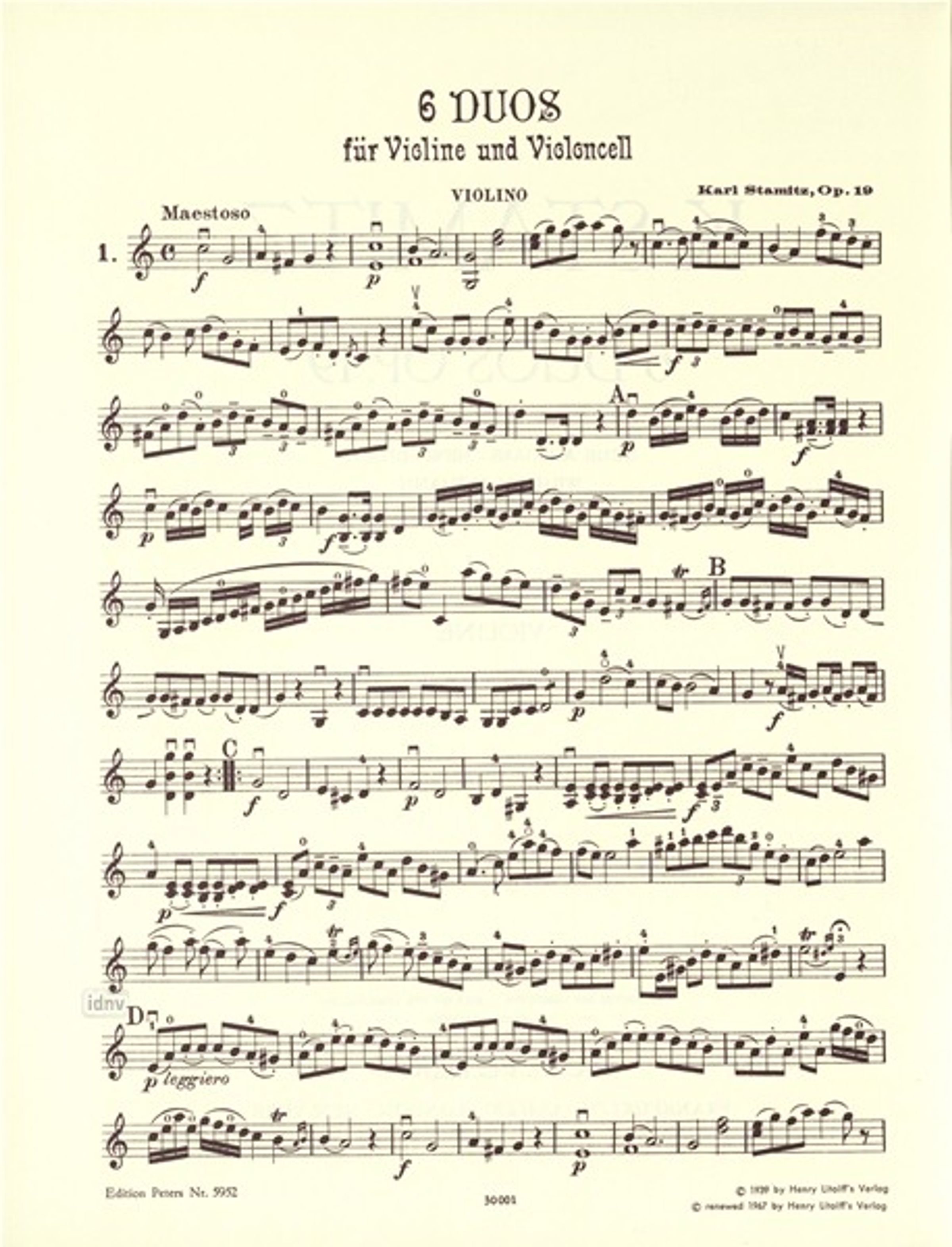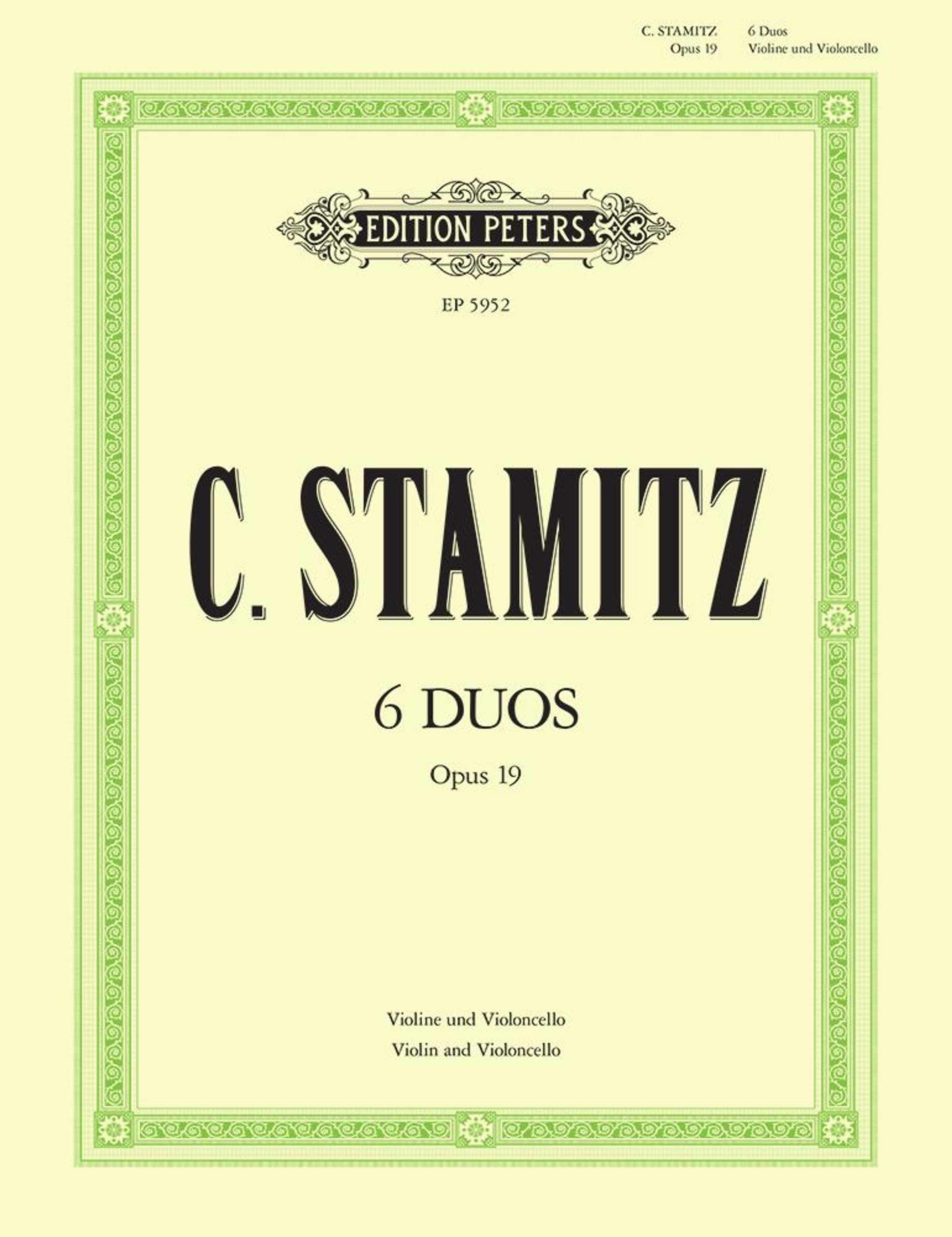 6 Duos for Violin and Cello, Op. 19, written by German composer, Carl Stamitz, and edited by Wilhelm Altmann.