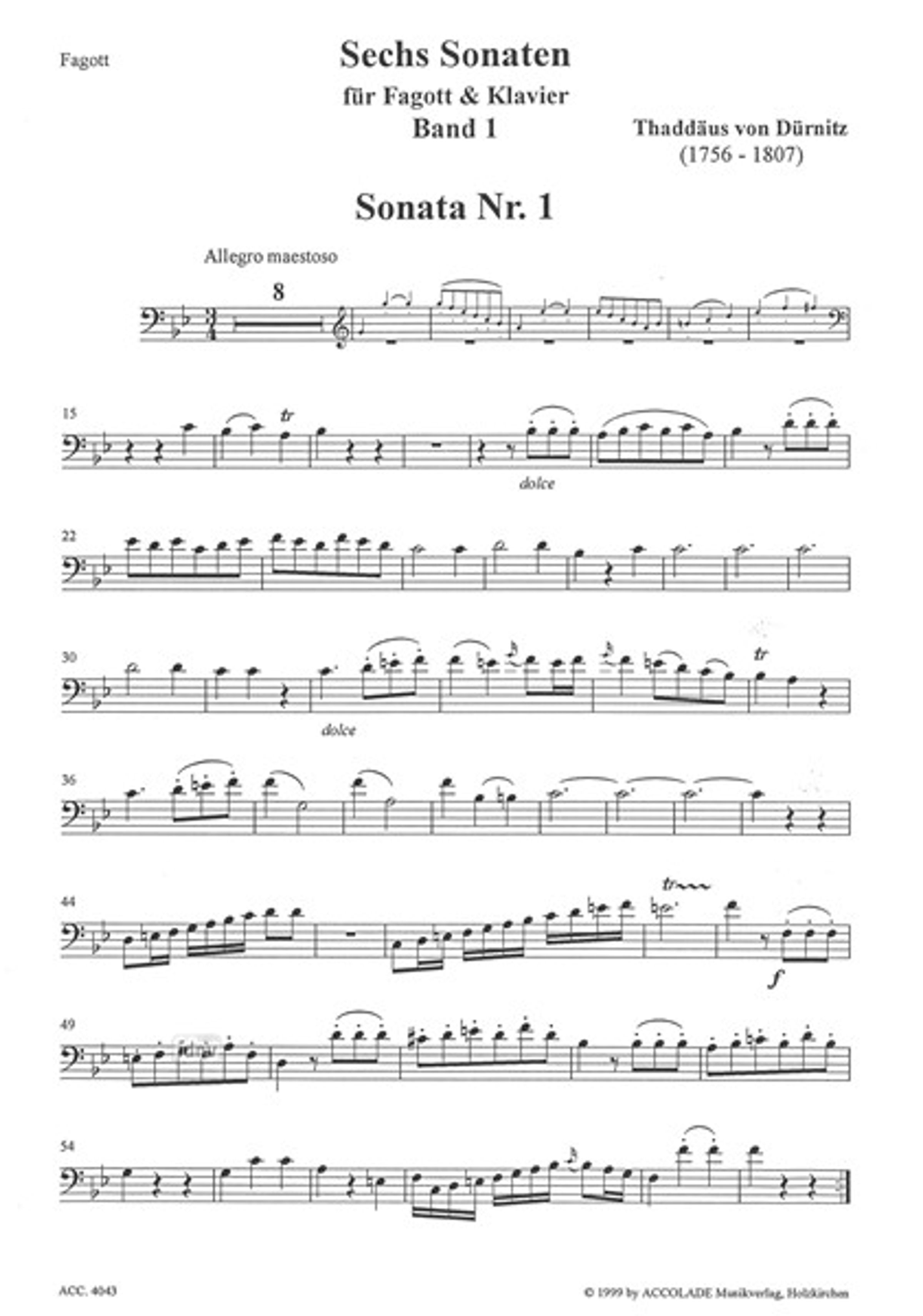 Freiherr Thaddäus von Dürnitz: 6 Sonaten für Fagott und Klavier