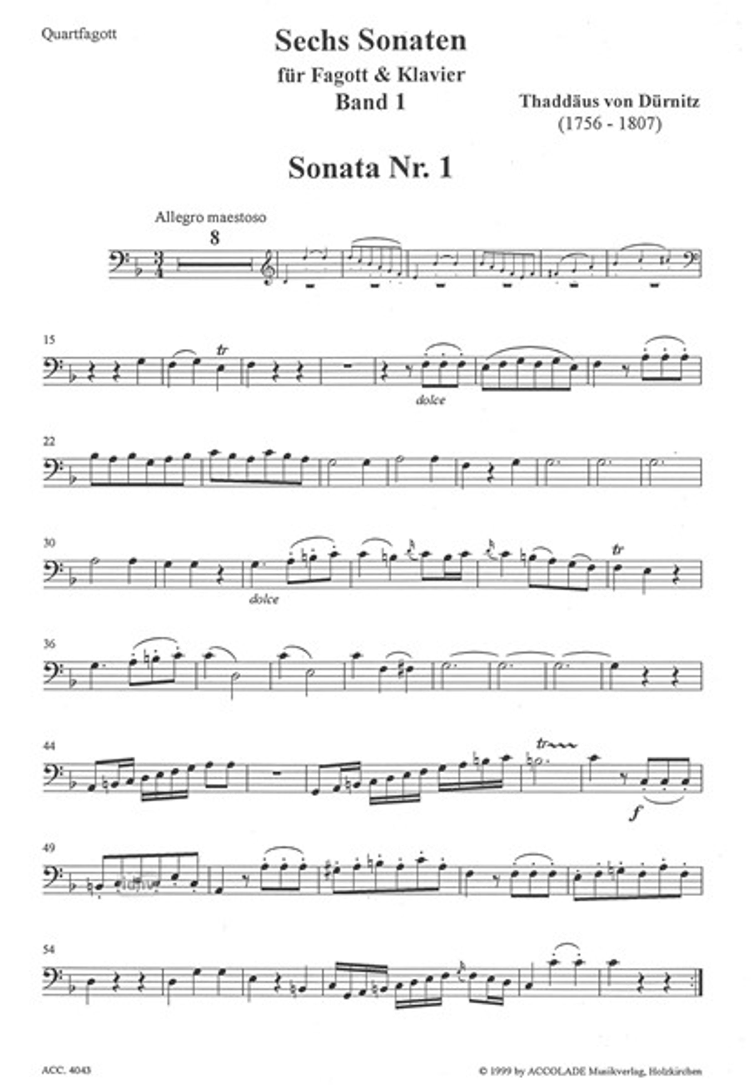 Freiherr Thaddäus von Dürnitz: 6 Sonaten für Quartfagott und Klavier, Noten