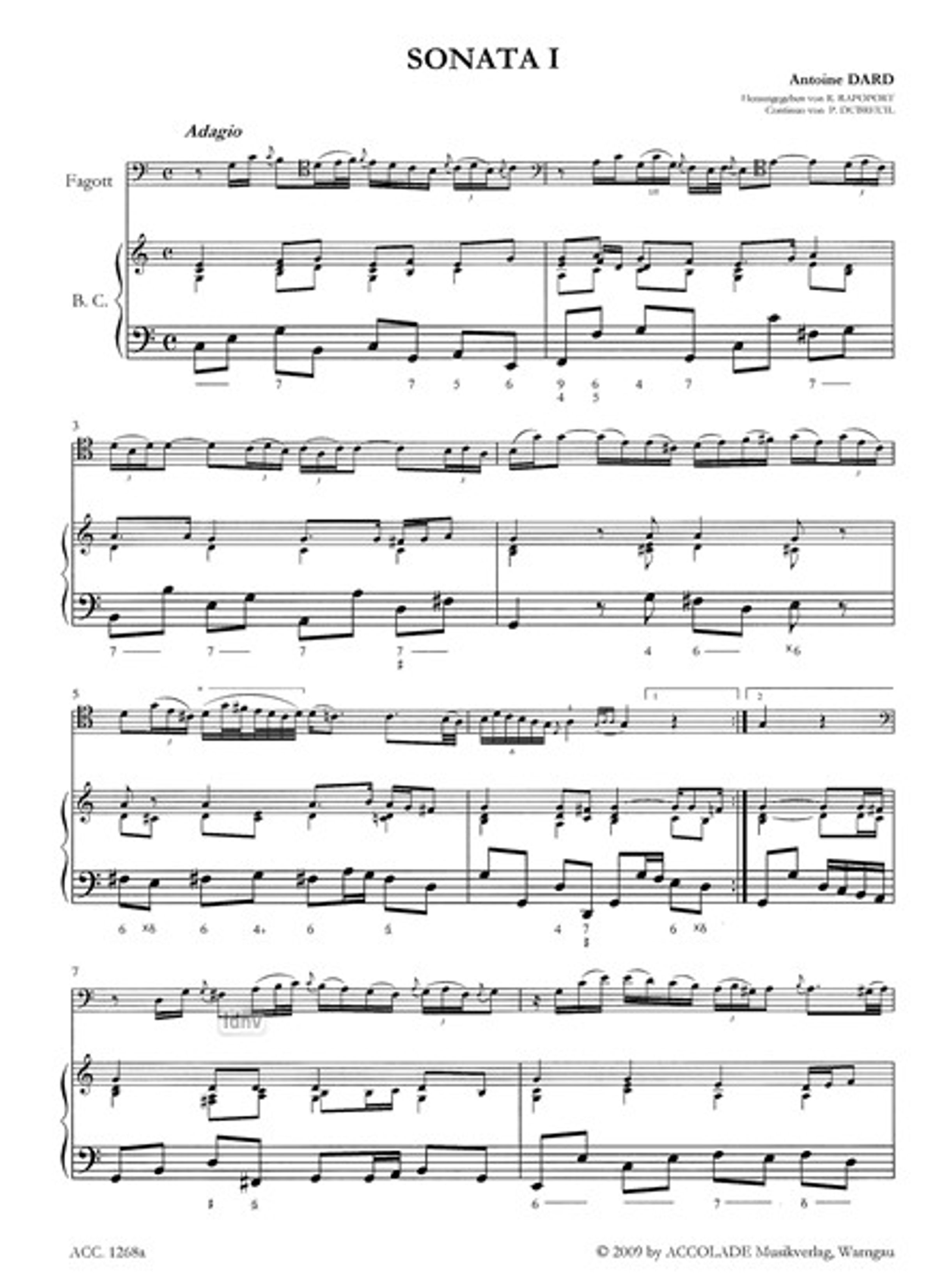 Antoine Dard: 6 Sonaten für Fagott (Violoncello) und basso continuo Heft 1 op. 2