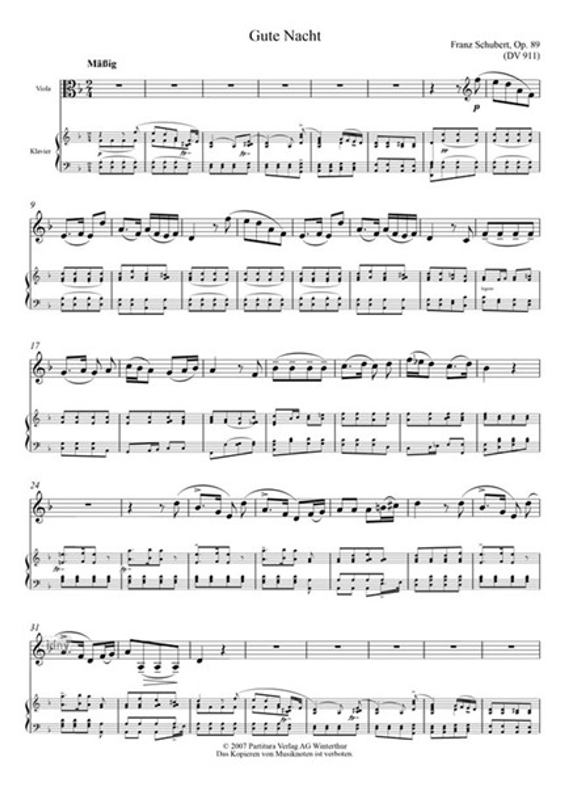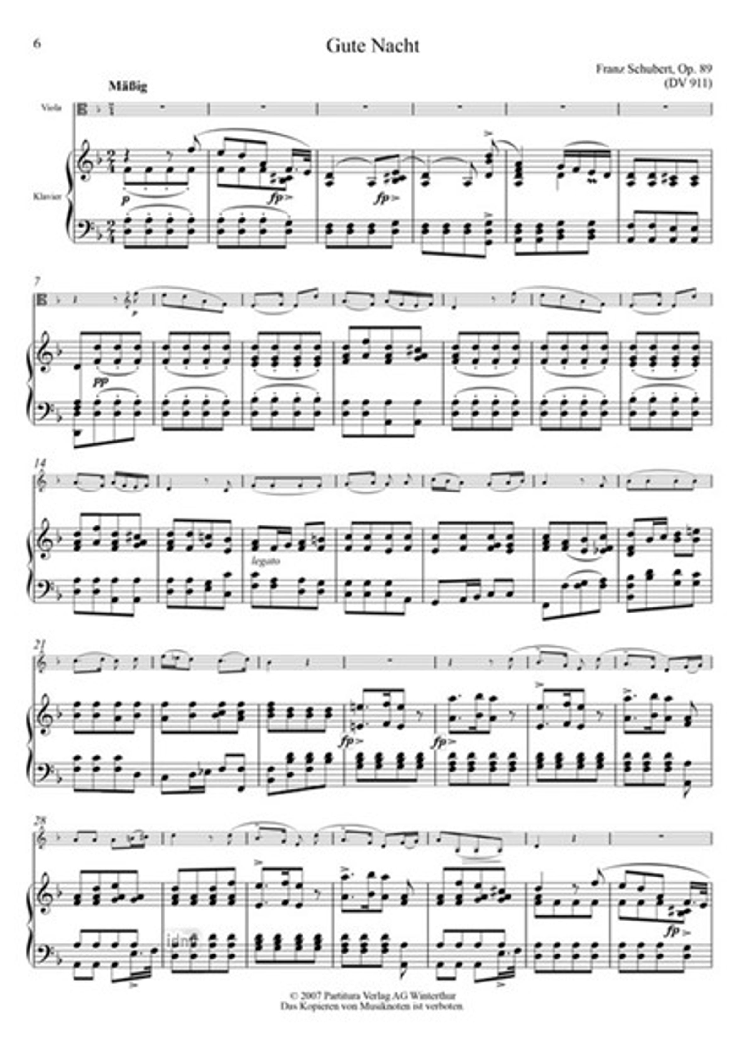 Franz Schubert: 8 Lieder aus der Winterreise für Viola und Klavier, Noten, Noten