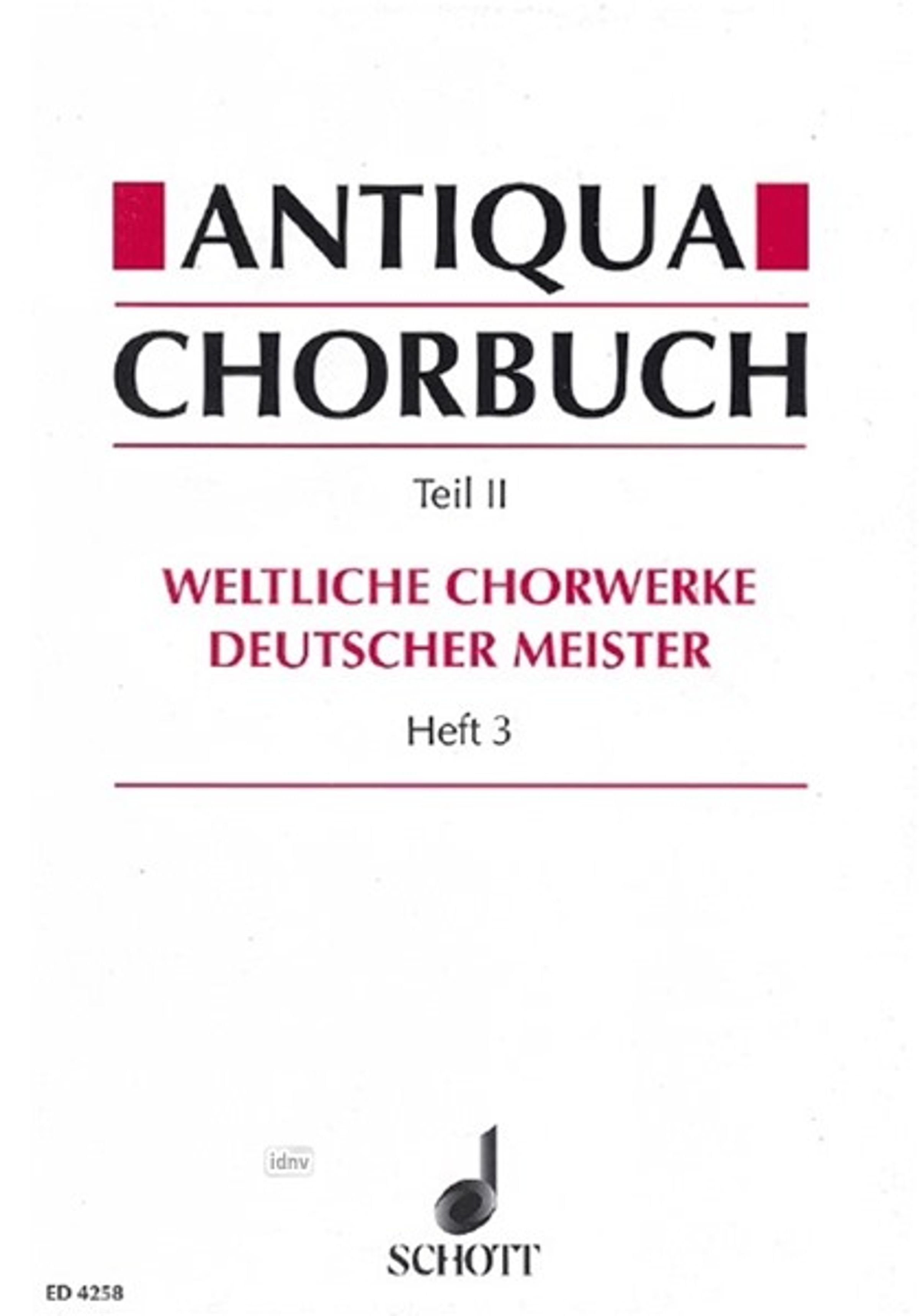 - Teil II / Heft 3; 196 weltliche 2-8 stg. Chorsätze deutscher Meister aus der Zeit um 1400 bis 1750