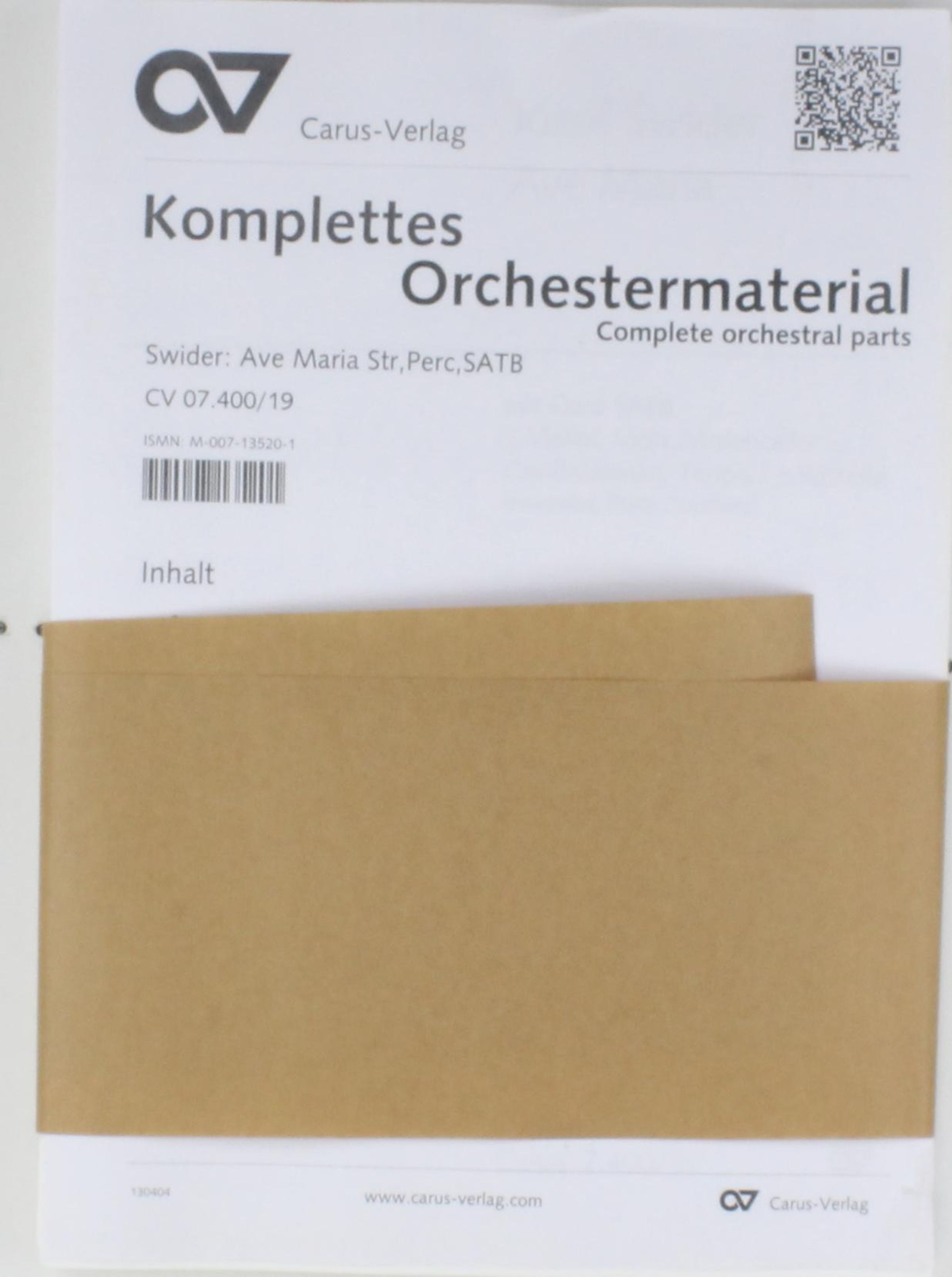 - Coro SATB, 2 Vl, Va, Vc/Cb, Timp, Perc