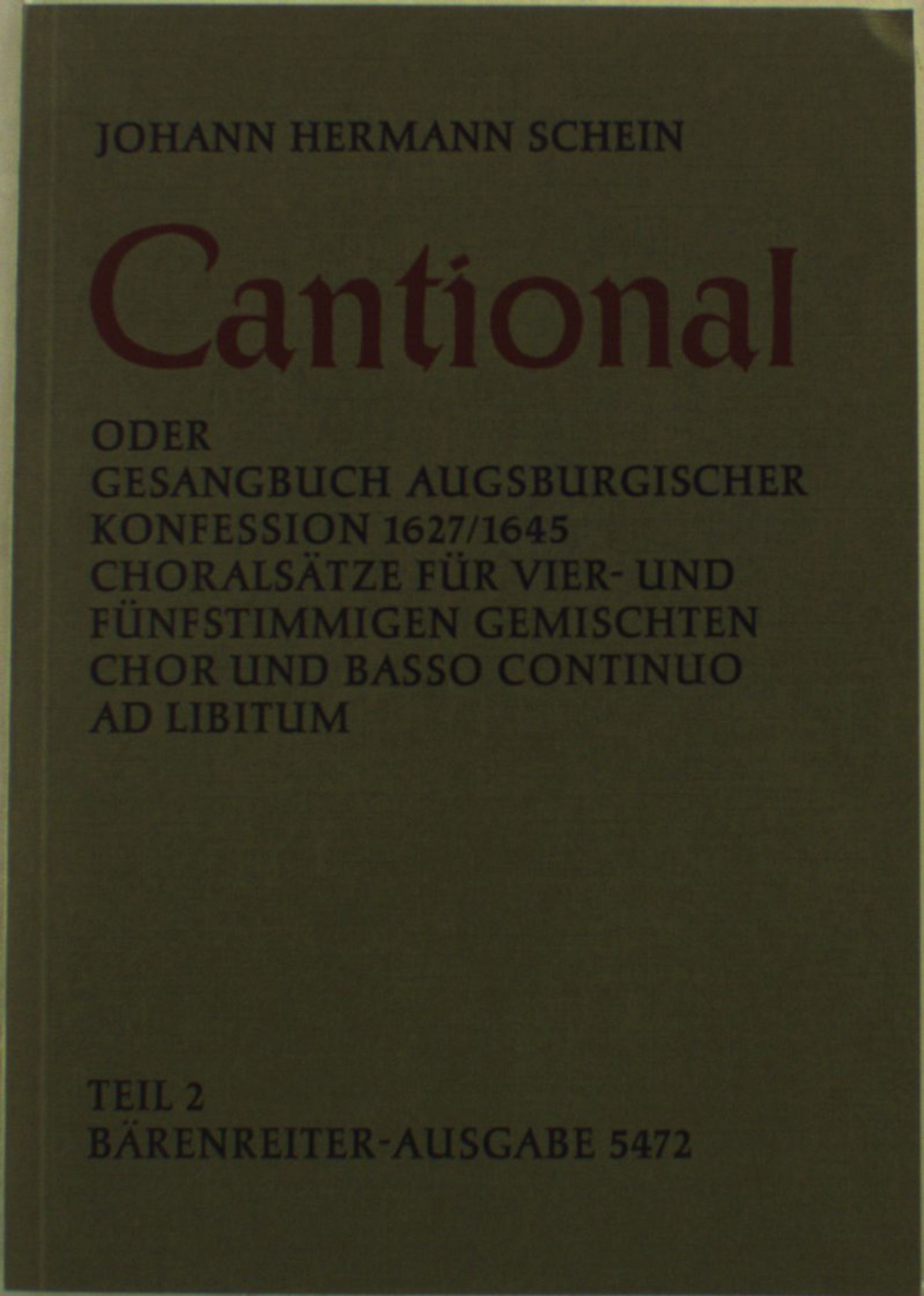 Johann Hermann Schein: Cantional oder Gesangbuch Augsburgischer Konfession 1627/1645, Band 2
