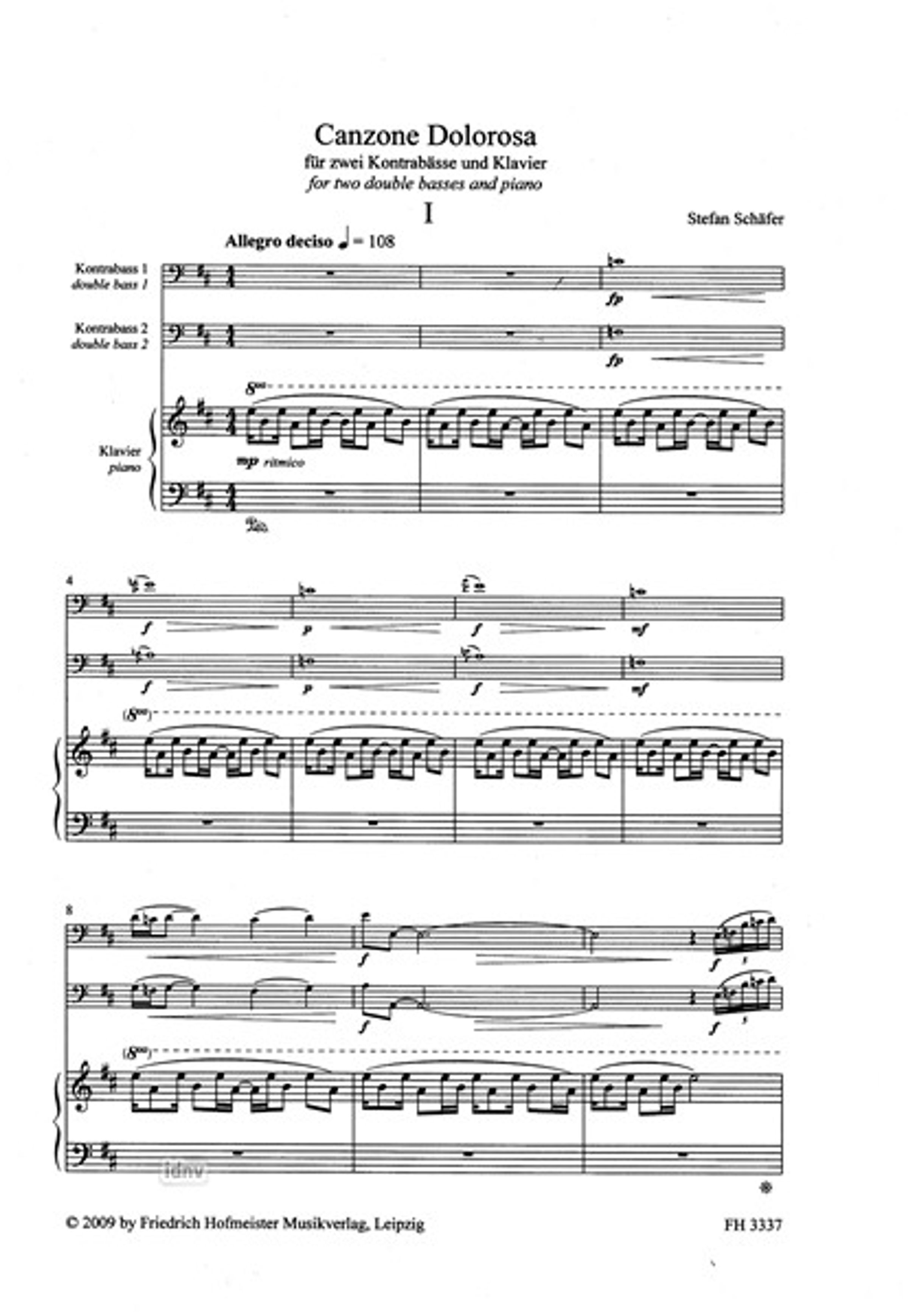 Stefan Schäfer: Canzone Dolorosa für zwei Kontrabässe und Klavier