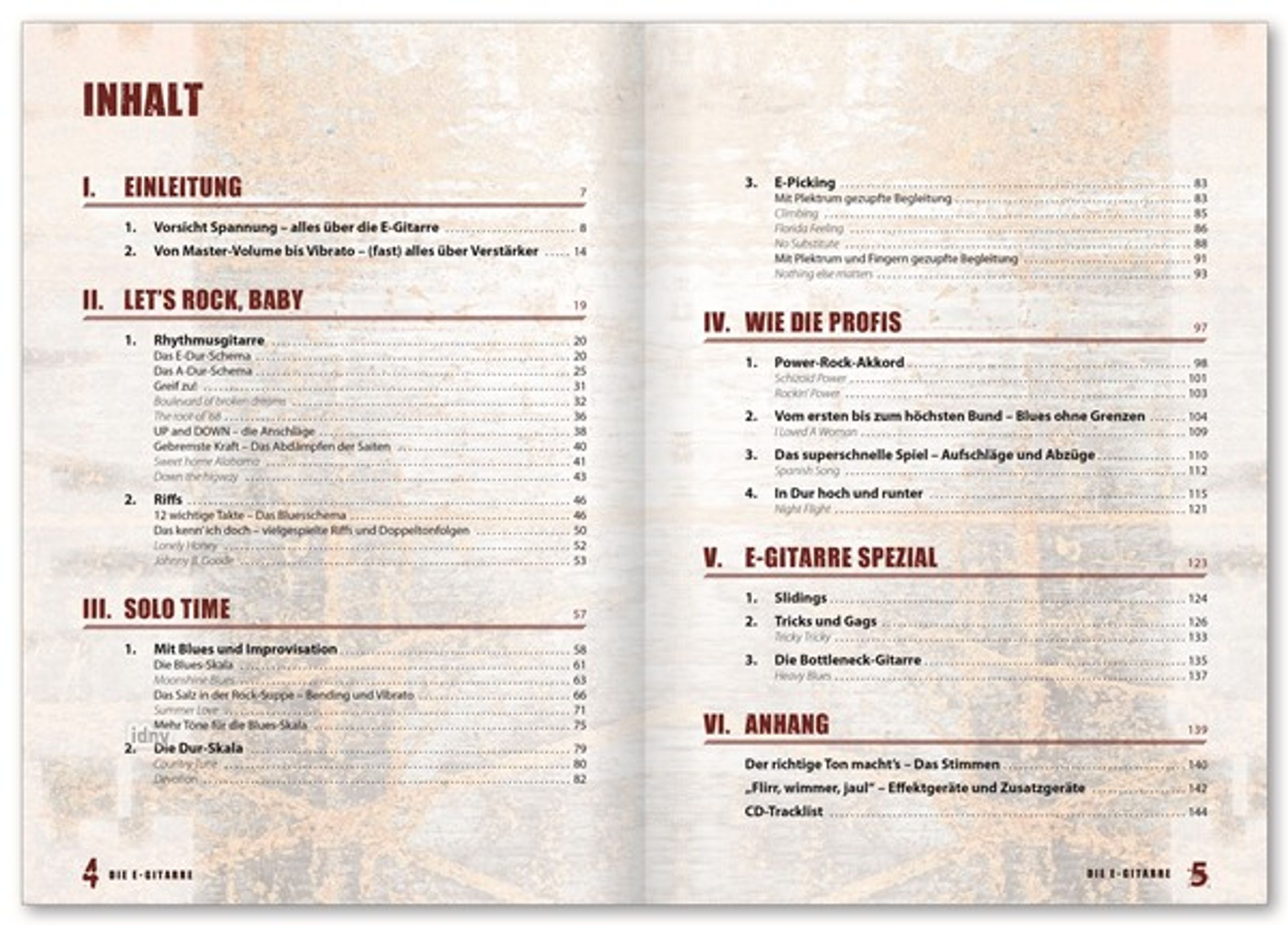 Das wichtigste Instrument der Rockmusik; vielseitig, aufregend und immer sehr individuell: die E-Gitarre. Diese komplett überarbeitete Neuausgabe ermöglicht dir einen schnellen Einstieg in die Welt der unterschiedlichen Möglichkeiten und Sounds der E-Gitarre und zeigt dir die mächtigen Power-Rock-Akkorde, angesagte Rockriffs, Blues-Licks und Improvisations-Skalen, nach deren Muster angesagte Hits von heute, aber auch die großen Klassiker und die traditionsreichen Oldies gestrickt sind. Ob Rock, Blues oder Ballade: in diesem Buch findest du alles, um schon bald deine eigene Musik zu machen. Wenn du dann ein wenig Erfahrung auf der Gitarre gesammelt hast, kannst du sofort mit den vielfältigen Audio-Tracks üben - und deiner eigenen Band wird schon bald nichts mehr im Wege stehen. Für die richtigen Tricks und spieltechnischen Gags ist dabei in diesem Buch genauso gesorgt wie für die entscheidenden Tipps zu Verstärkern, Effektgeräten und anderem Equipment. Auf der beiliegenden CD findest du insgesamt über 50 Takes zum Mitspielen, darunter auch ausführliche Songs u. a. von Green Day, Metallica oder Lynyrd Skynyrd. Alle Beispiele und Licks mit detaillierter Tabulatur und natürlich wie immer ohne Noten! Viel Spaß und keep on rockin'!