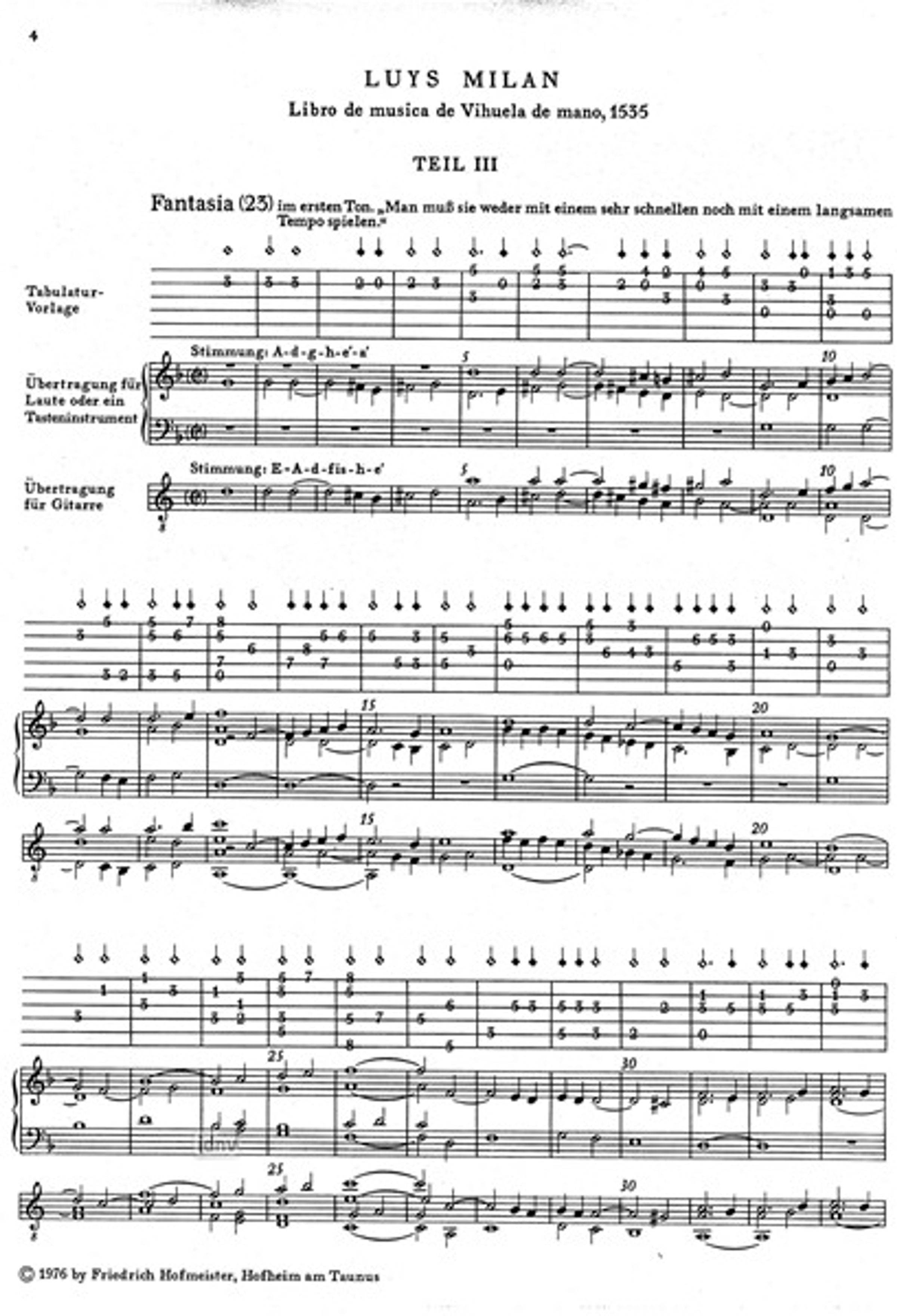 Luys Milan: Die Tabulatur, Heft 19: Libro de musica de Vihuela de mano, 1535, Teil III