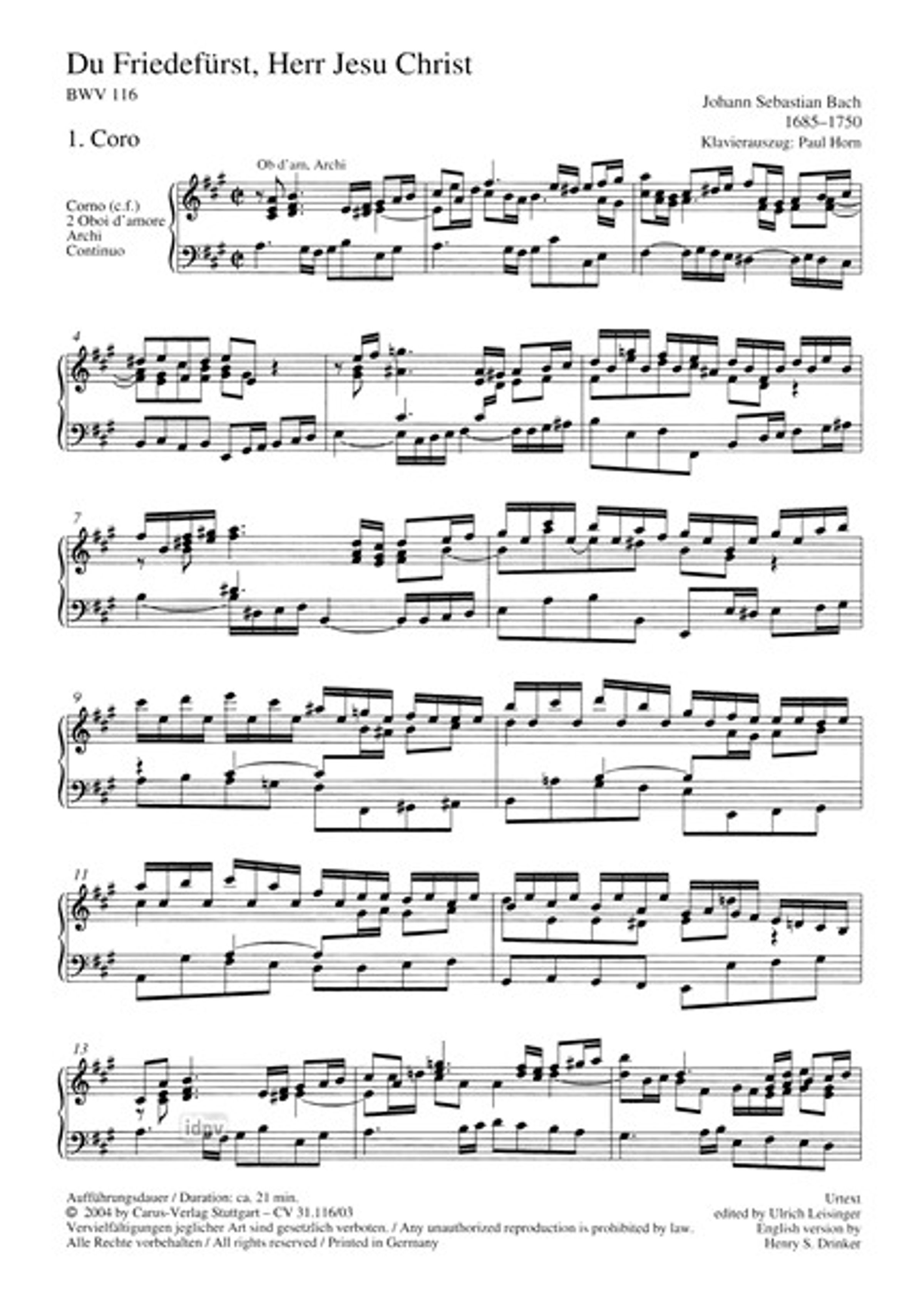 Johann Sebastian Bach: Kantate Nr.116, Klavierauszug