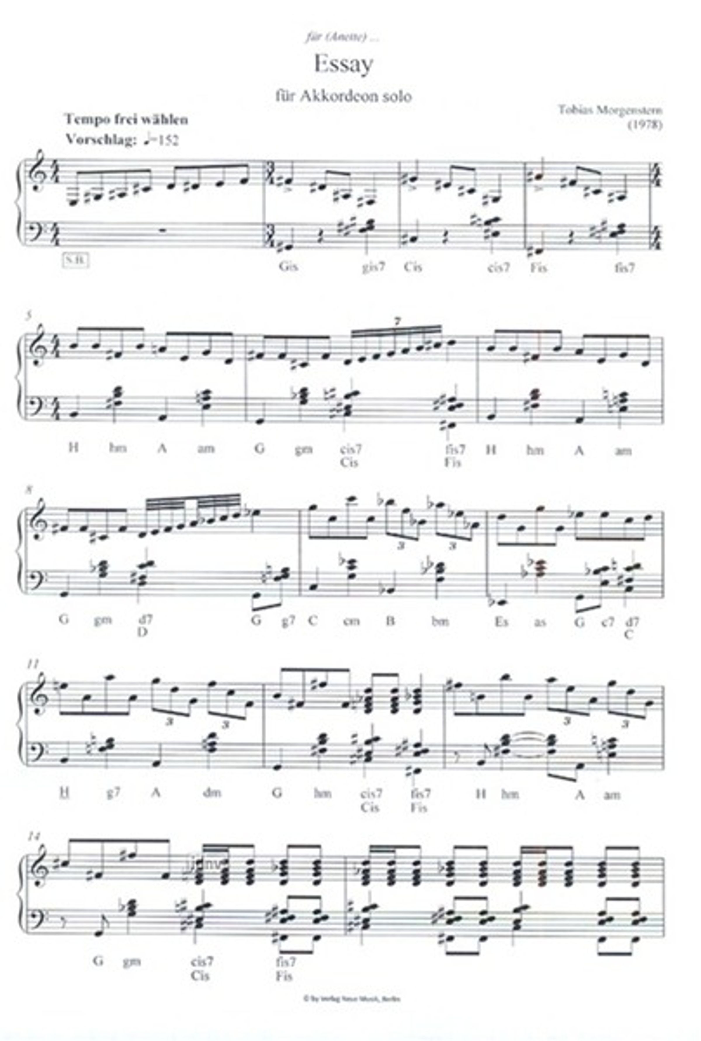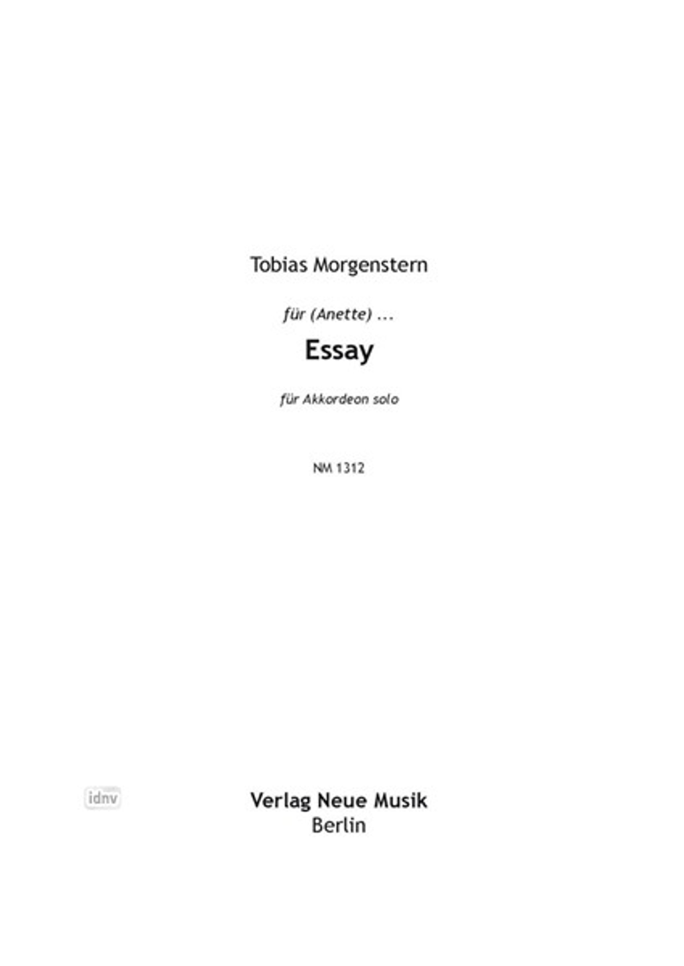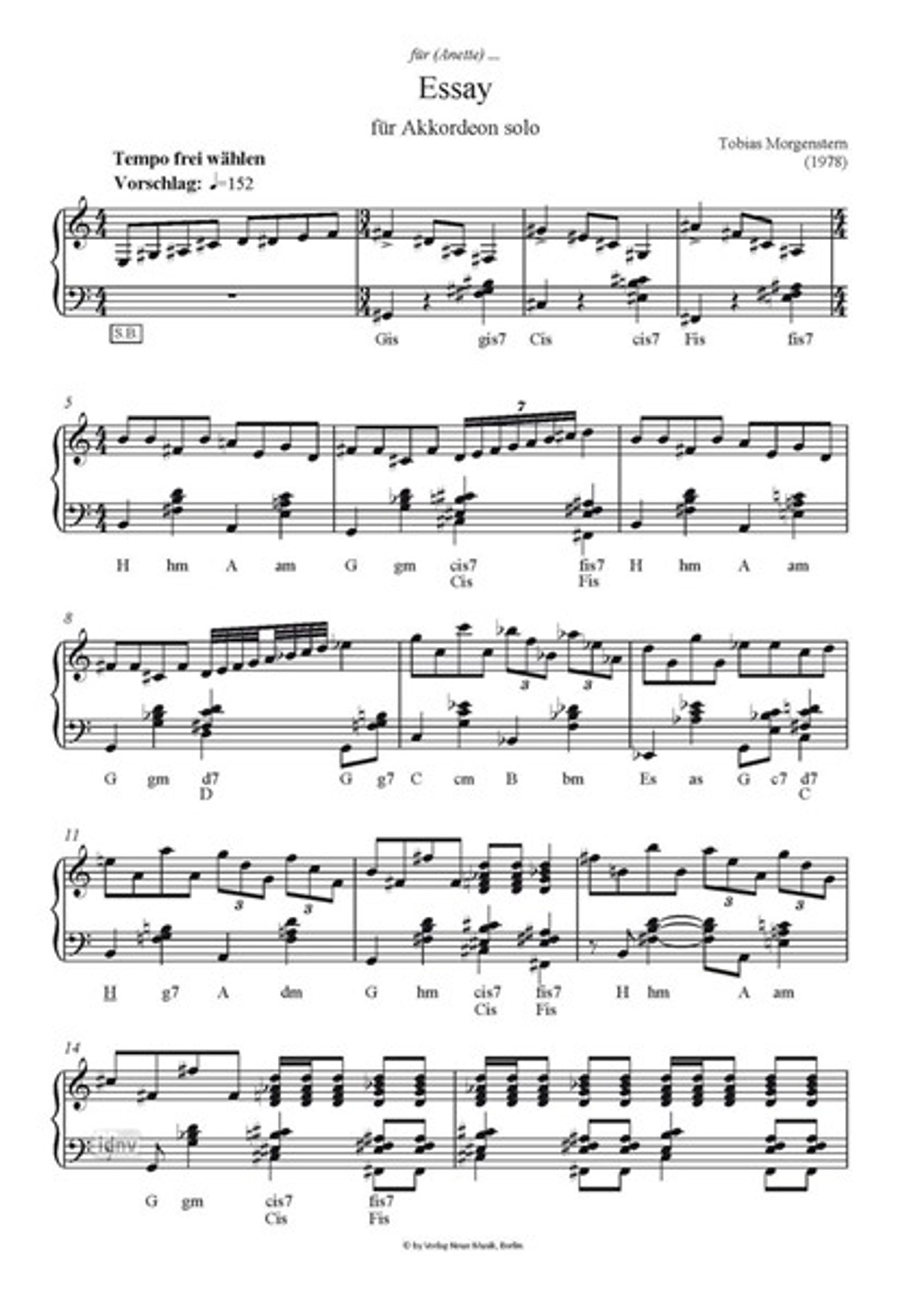 Tobias Morgenstern: für (Annette) ... Essay für Akkordeon solo