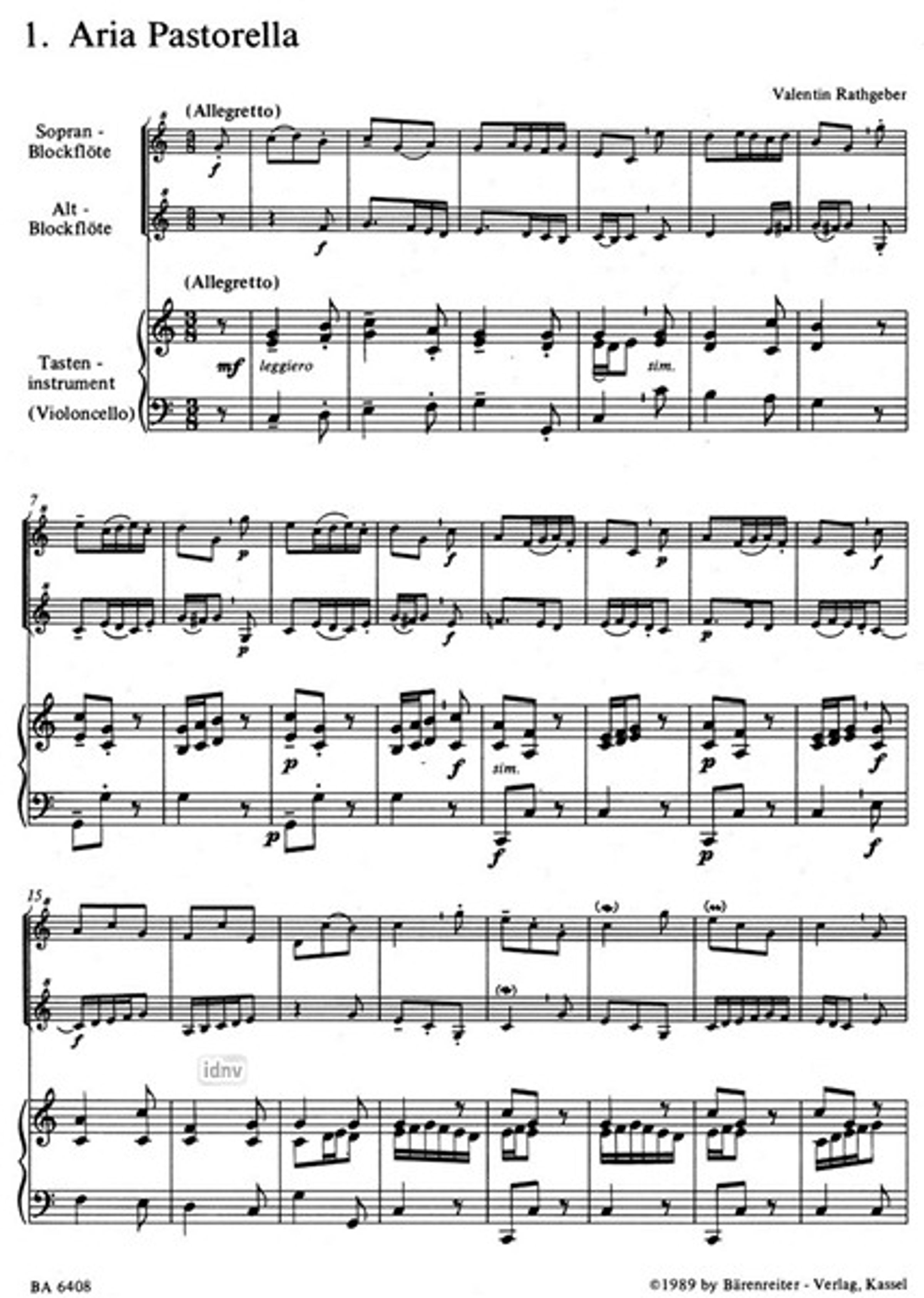 - Sopran-Blockflöte, Alt-Blockflöte, Klavier, Cembalo, Basso continuo