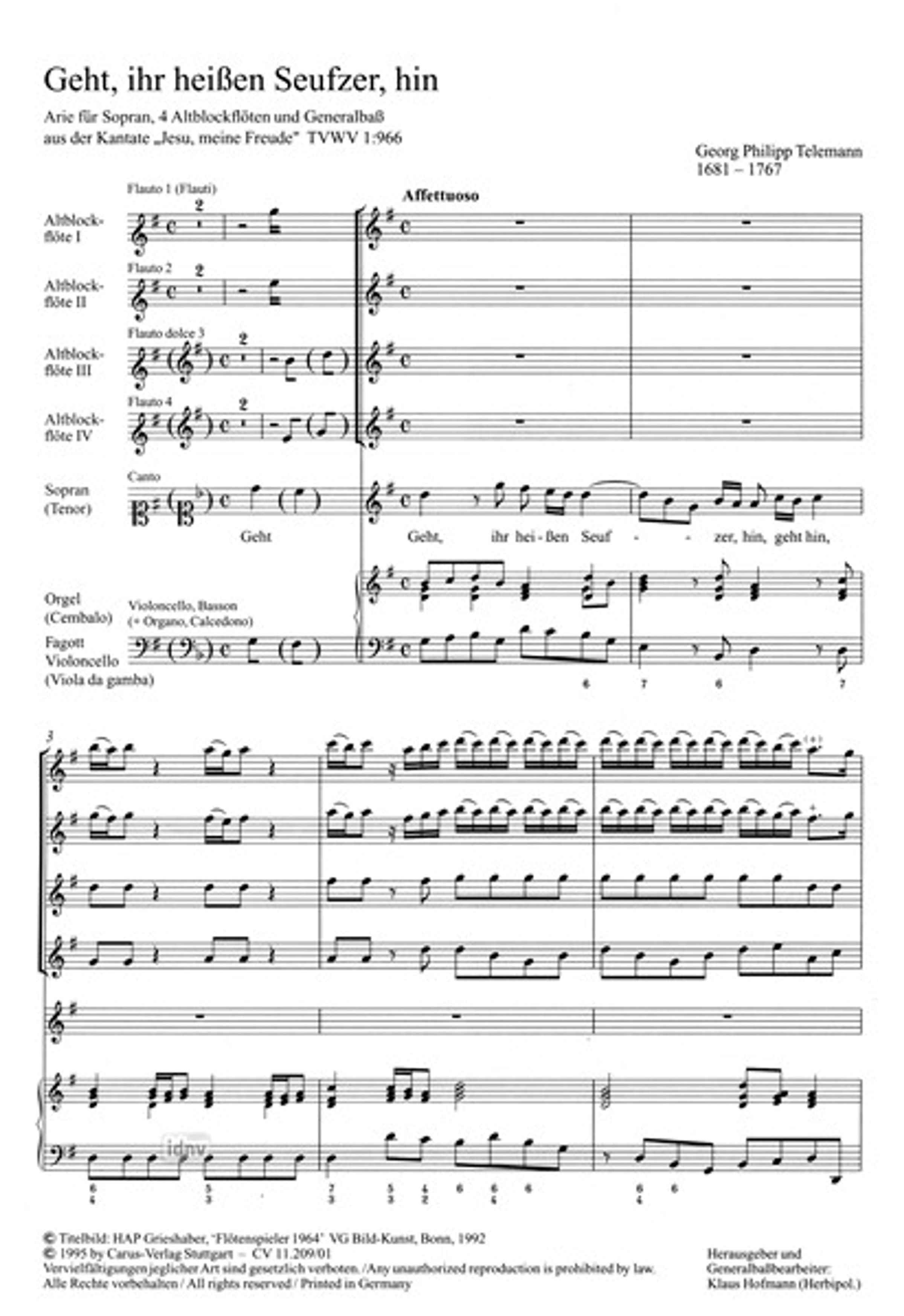 1 Geht, ihr heißen Seufzer, hin G-Dur TVWV 1:966