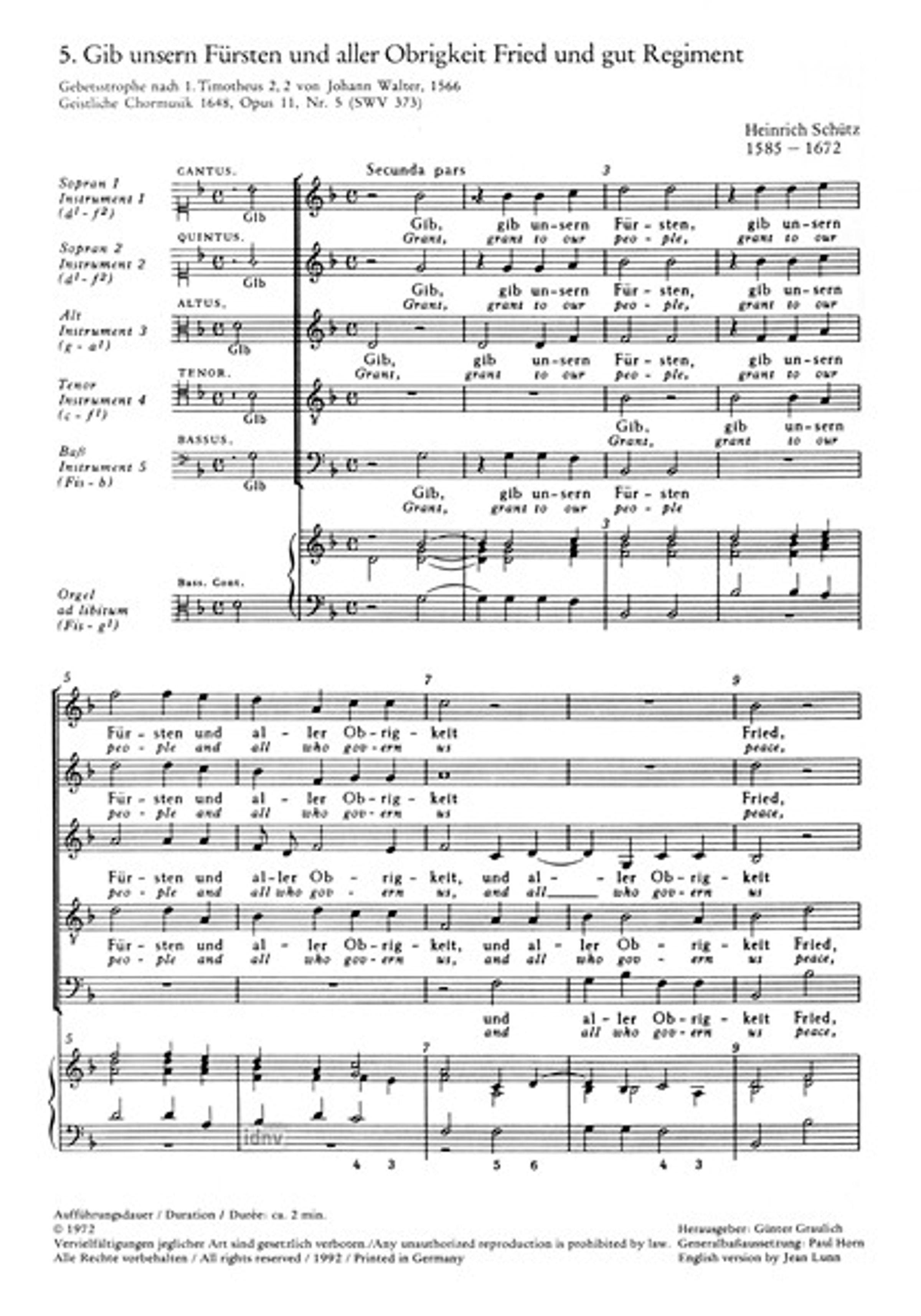 1. 1 Gib unsern Fürsten SWV 373